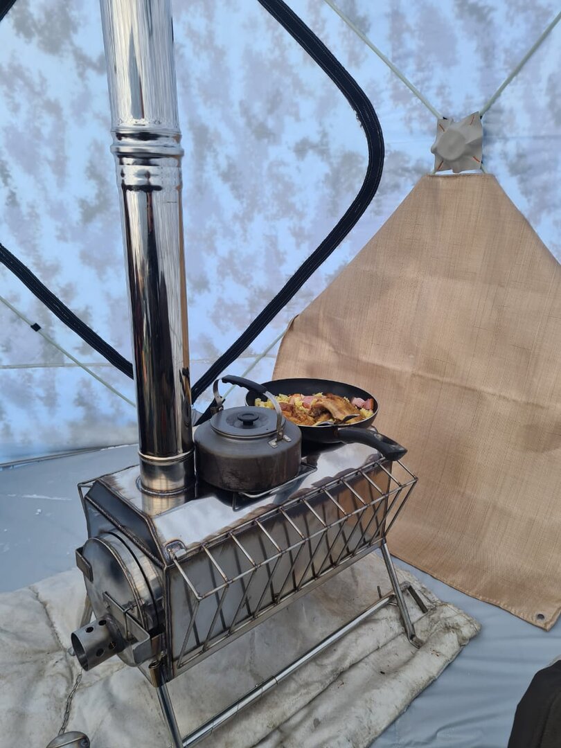 3. Проведя еще ночевку с феном, дождался заказанной печи. В с али был еще заказан вентилятор на теплогенераторе, который отлично раздувал тепло по палатке.