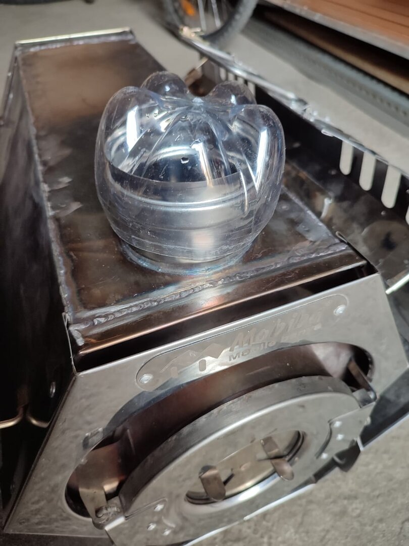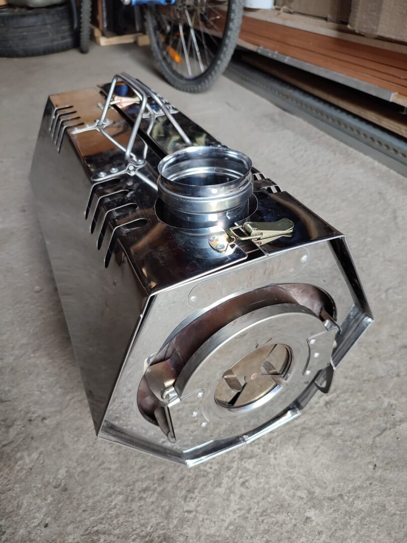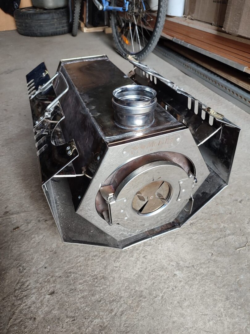 Поддувалом можно будет регулировать тягу. На старой печке была 100 труба и регулировали поддувалом. Стара печка была сделана из тонкого железа и конструкция была немного не практичной. Ножки были съёмные (не удачная конструкция), без защитного экрана (не безопасно, когда стоит близко к стенки палатки). Сейчас новая палатка - 4.20 на 2.20 метра. Объем печки нужно было увеличить. Площадь палатки увеличилась практически в два раза.Для такого объёма печи сотки будет многовато, трудно будет отстроить длительное горение.