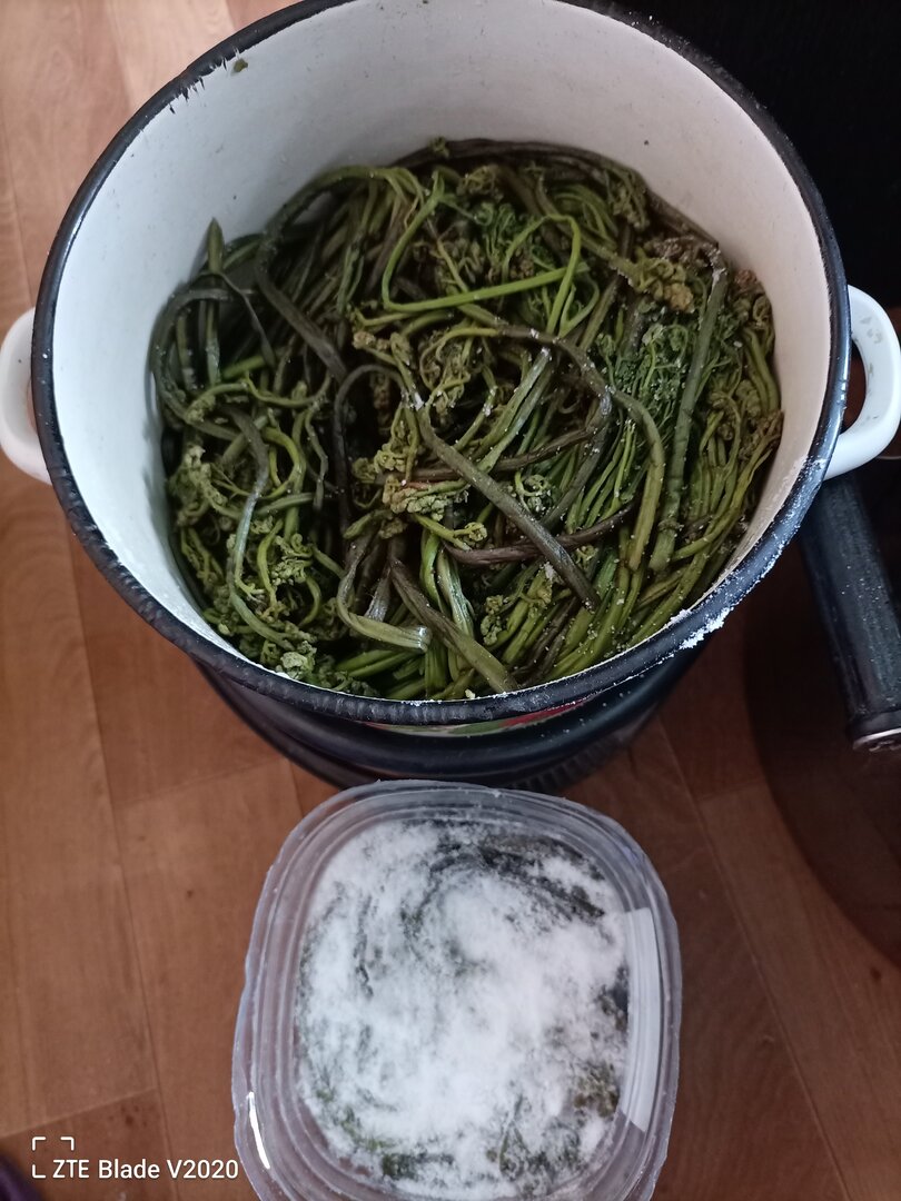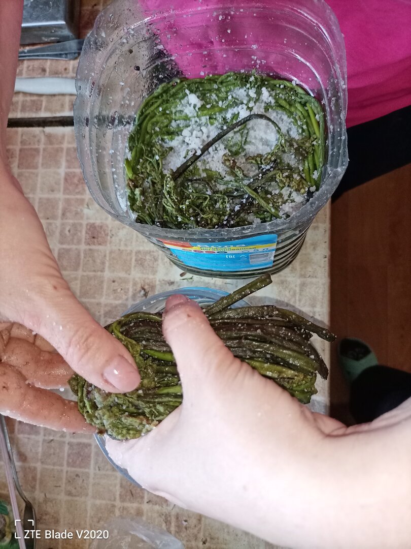 Небольшая, моя пред история. Когда жили на ДВ, всегда собирали и употребляли его свежим, тушили с мясом, жарили с картошкой.... Лет 15 его не ела, соскучилась....И тут, недалеко от своего нынешнего ПМЖ, случайно нашла его в лесах Рязанской области. Счастью не было предела))). Отвела душу по полной. Решила ещё заготовить в прок, никогда этого не делала. Но, что-то идёт у меня не так. 1. Высушила кг. 5 в сушилки. Перед, отварила 7 мин. в подсоленной воде. Очень смущает запах. Какой-то кислый и неприятный. 2. Отварила 7 мин. и заморозила, через две недели попробовала. Больше я так делать не буду))). Размазня, есть не очень приятно. 3. Солю по ГОСТу, рецепт из интернета. Каждый раз (вчера был третий), сливаю жидкость, перебираю, заново солю. Запах!!! Я даже не знаю, как вам его передать, очень химический и совсем не съедобный. Может быть это нормально? Или мне нужно его выбрасить? Честно скажу, очень опечалена и боюсь даже пробовать ....На вид и ощупь, вроде бы все хорошо. Выдерживала 21+21+15 дней. Ёмкости разные, стекло, пищевой пластик, эмаль, а запах папоротника одинаковый.