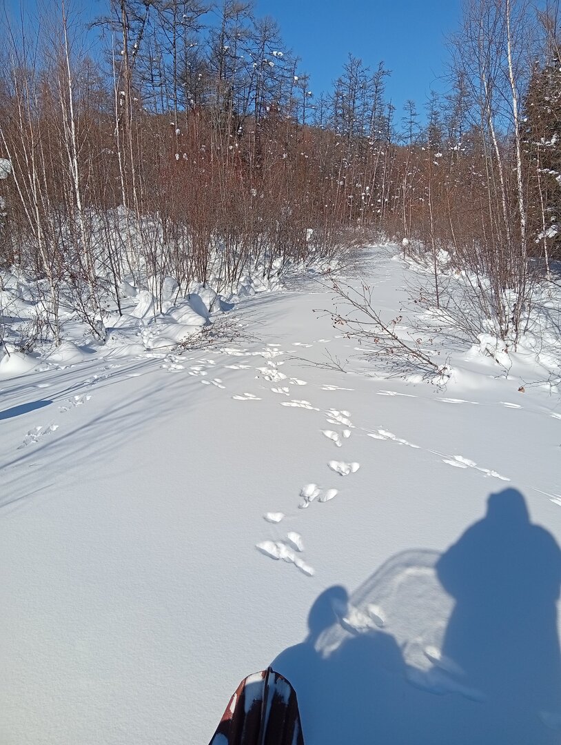 Погода огонь. Утром минус 30, после обеда до минус 9 отпускает. За три дня больше 50 км на лыжах натоптал. А дышится то как!