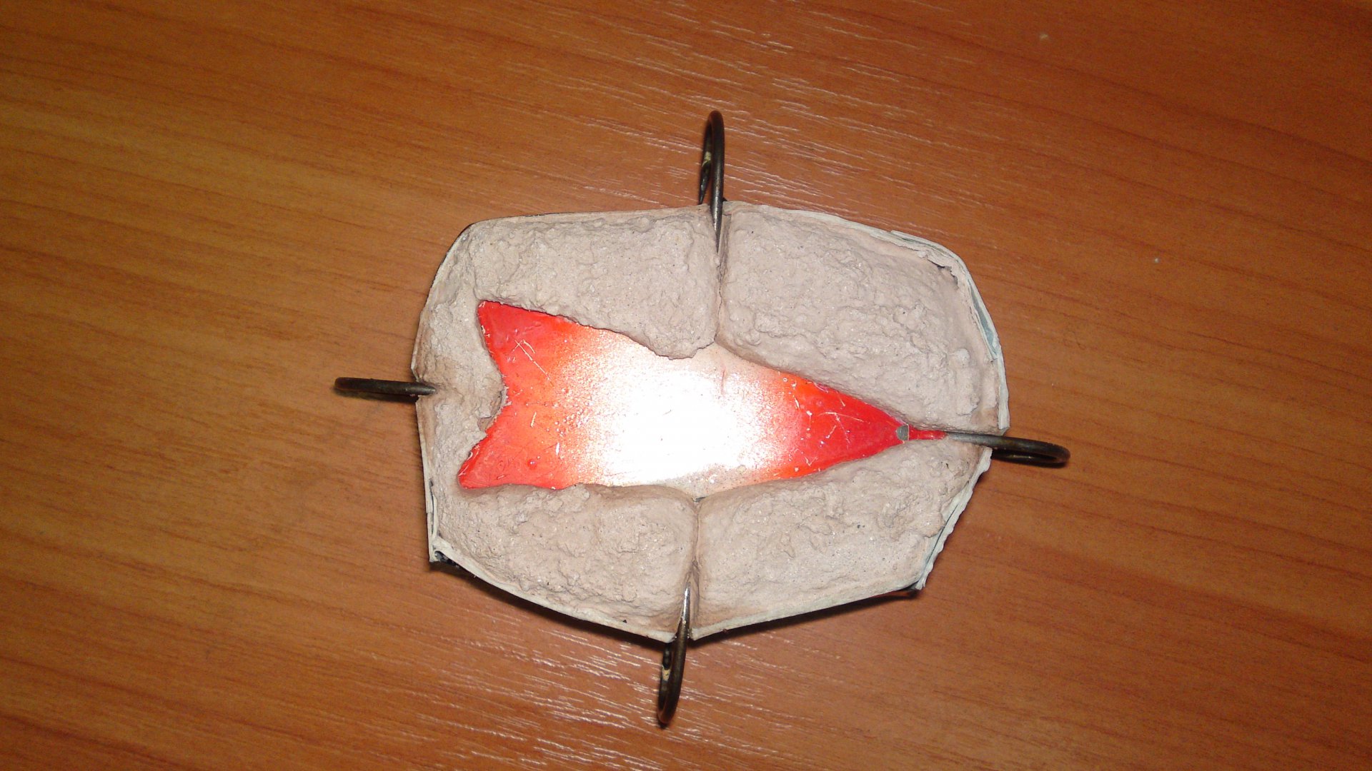 Далее самое сложное. Нужно поймать момент в жизне что бы быть не с будуна. Зачем? Затем что бы не тряслись руки ибо работа предстоит пчти ювелирная. Короче, выгоняем всех из дому (ну или сами сбегаем) чтоб не "каркали" под руку и начинаем аккуратно выцарапывать острым инструментом, края крабика и желобы для крючков.