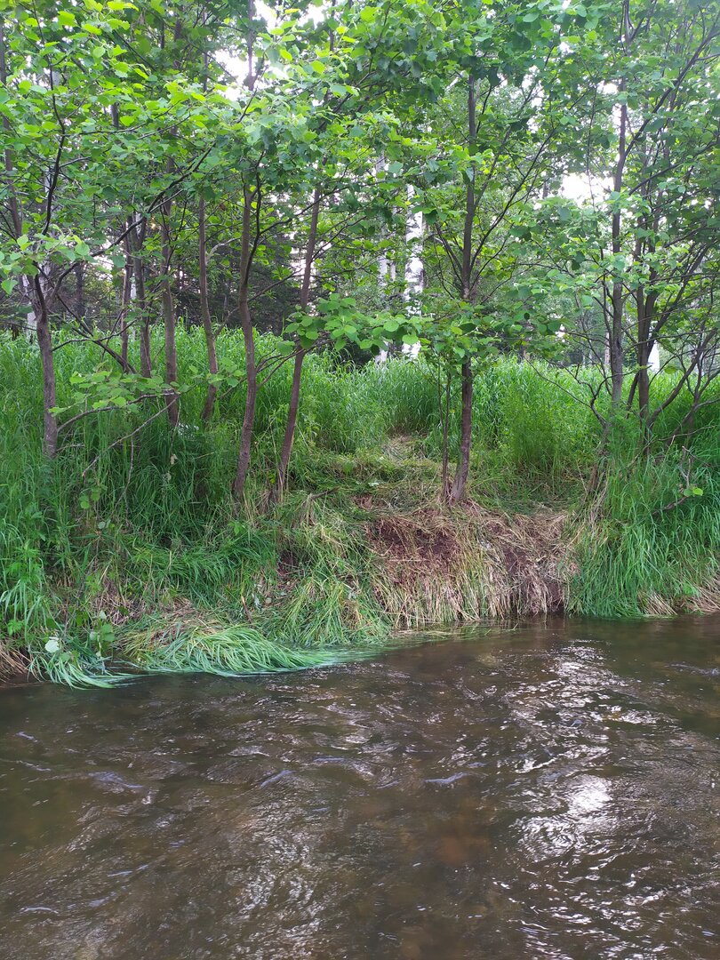 Я хожу на это место лет 8, оно по пути для многих, но со своей спецификой, поэтому редко кто там кроме меня и отца. Там росла над водой шикарная берёза, можно было ловить и перед и за, и под ней и с боку, тень, ямка. Какой то пи... с спилил её зимой, да ещё кучу других по обоим берегам, но не полностью, а подпилил чтобы она под своим весом упала в воду. Цель? Да хз. Бытует мнение чтобы создать проблемы сплавщикам, но им вообще всё равно, они как ходили так и ходят с сетями. Эта берёзка была как родная...