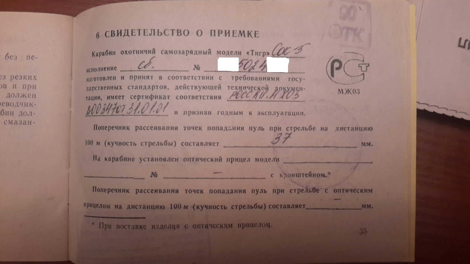 Нашел карабин Тигр, попросил хозяина предоставить страницу с паспорта, где отмечена "куча".