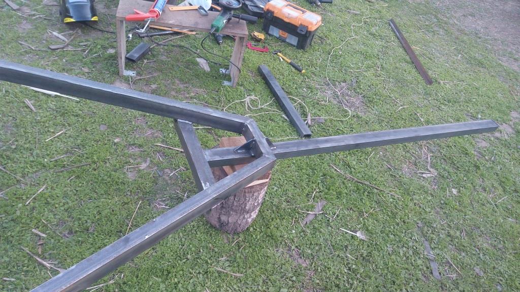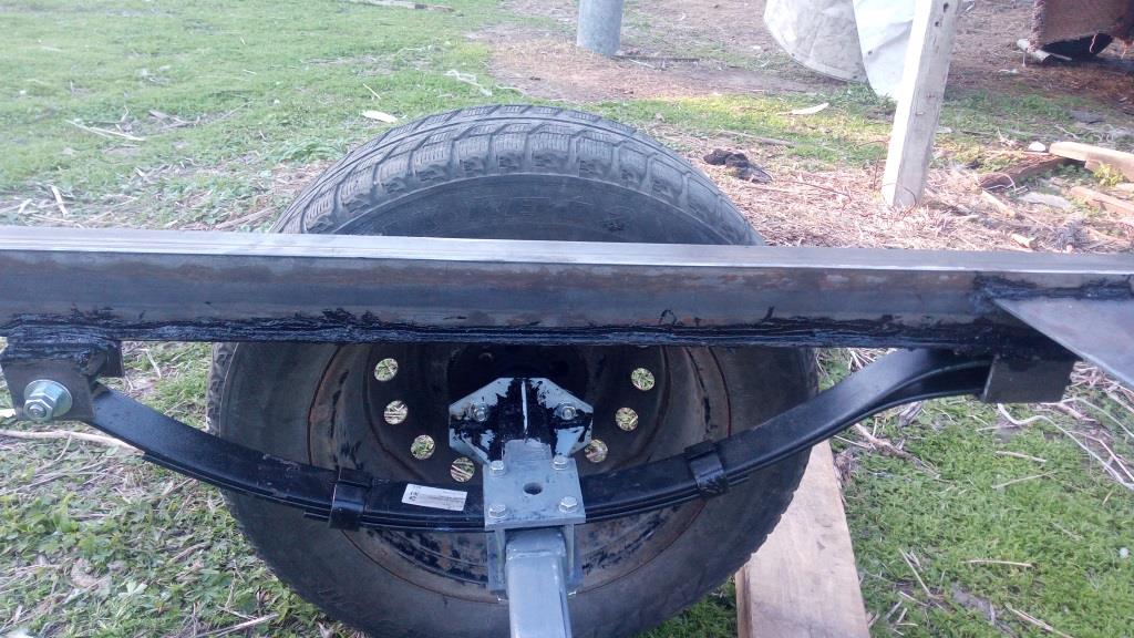 косынки поставил (на фотке с колесом видно), ось усилил уголком, в итоге ось нормальная по ттх, только сложная (и страшная) :)