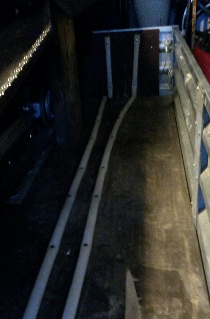 Когда его возишь он коньками весь пол расковырял. Присобачил рельсы из полиэтиленовой трубы от теплого пола. Теперь заезжает как по маслу и пол не царапает.