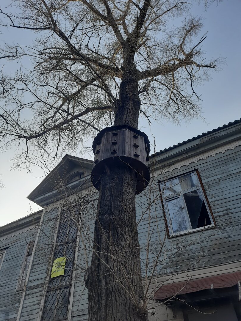 А рядом с деревом - мега скворечник - барский старинный брошенный дом с мезонином..Абсолютно реальная вещь: 24х кв. скворечник. Хабаровск, улица Советская. Посмотреть вложение 414796