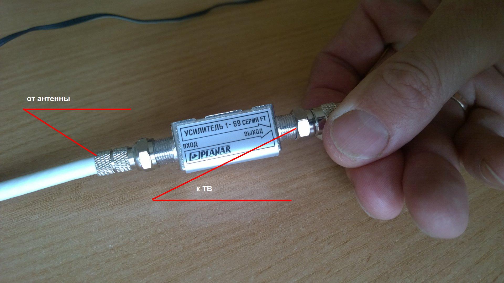 - 220в подключаешь, сигнал усилится и будет вам счастье на голубом экране. Только вход с выходом не перепутайте!