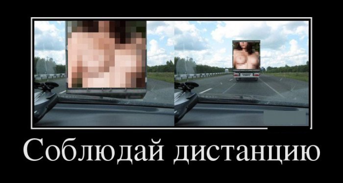 смысл - что из-за пикселей вблизи ничего не разобрать, и надо подотстать, двигаясь за ЕХАВШЕЙ ВПЕРЁД фурой.