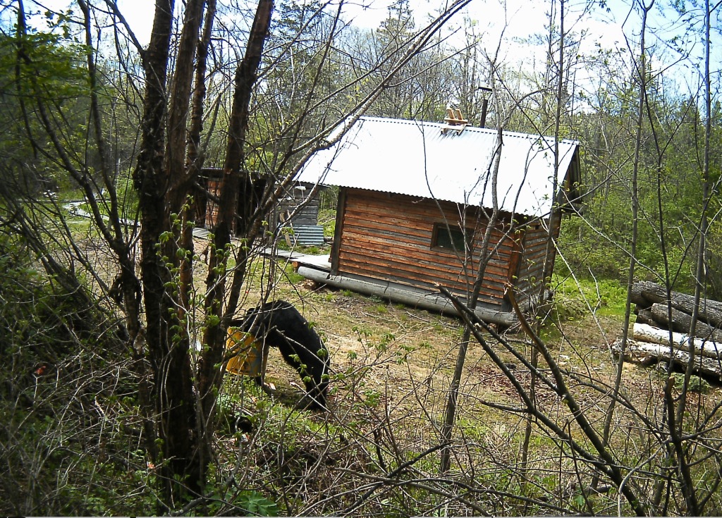 На молочку потянуло. А потом он сломал веранду и залез в дом и в баню. Ну там все сами увидите, как поедите. Пора его покормить. Голодный мишка ходит и ищет пропитание. Ну что ж Вы так с ним. Голодает бедняга. Белогрудка еще Бурого пригласил, видать не справляется.