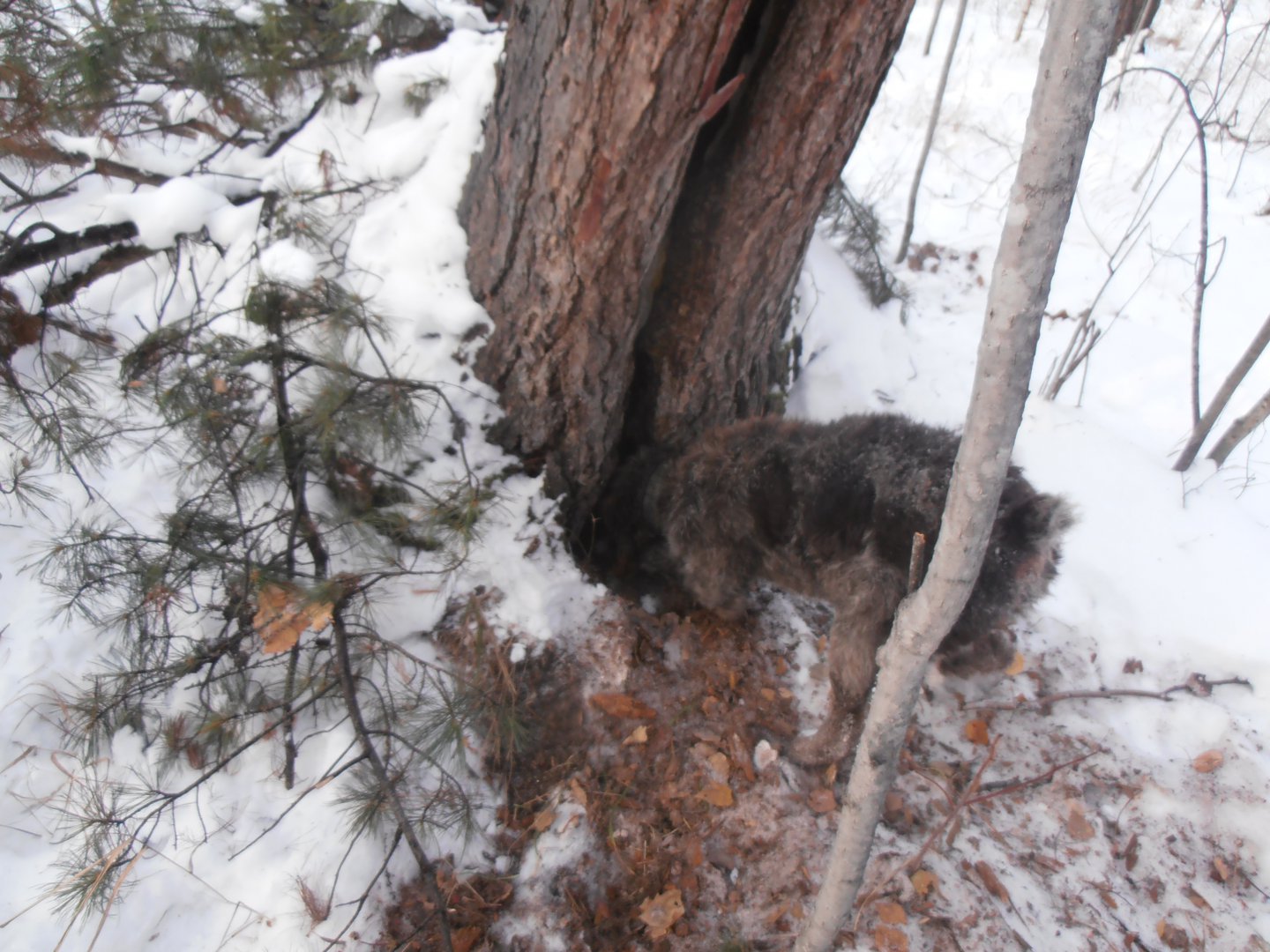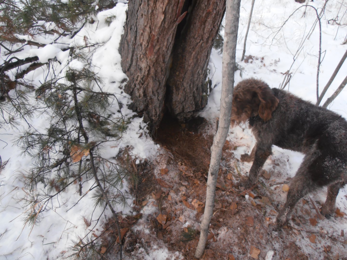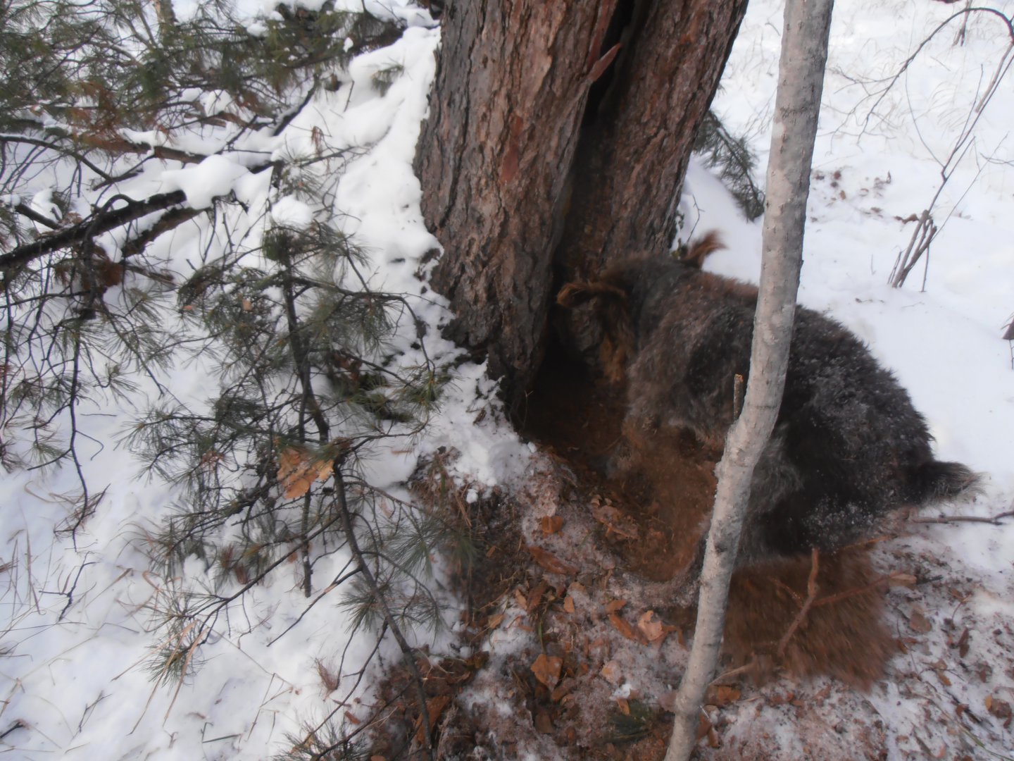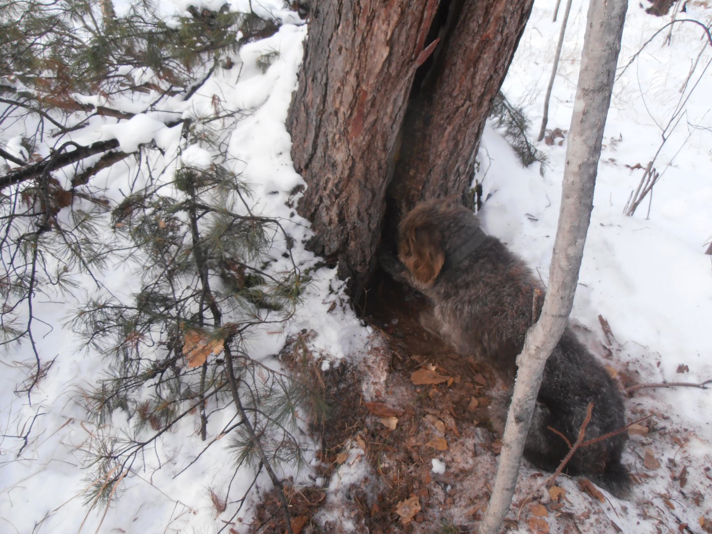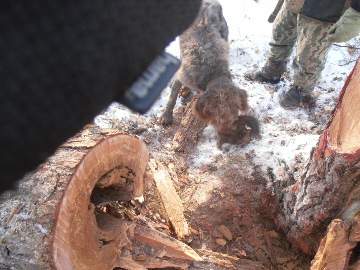Бакс обследовал пустотелый ствол и инициативы не проявляет,упорно лезет в корни.Значить соболь там и расширяем вход.Наконец пропил сделан и вход к корням свободен. Посмотреть вложение 188884