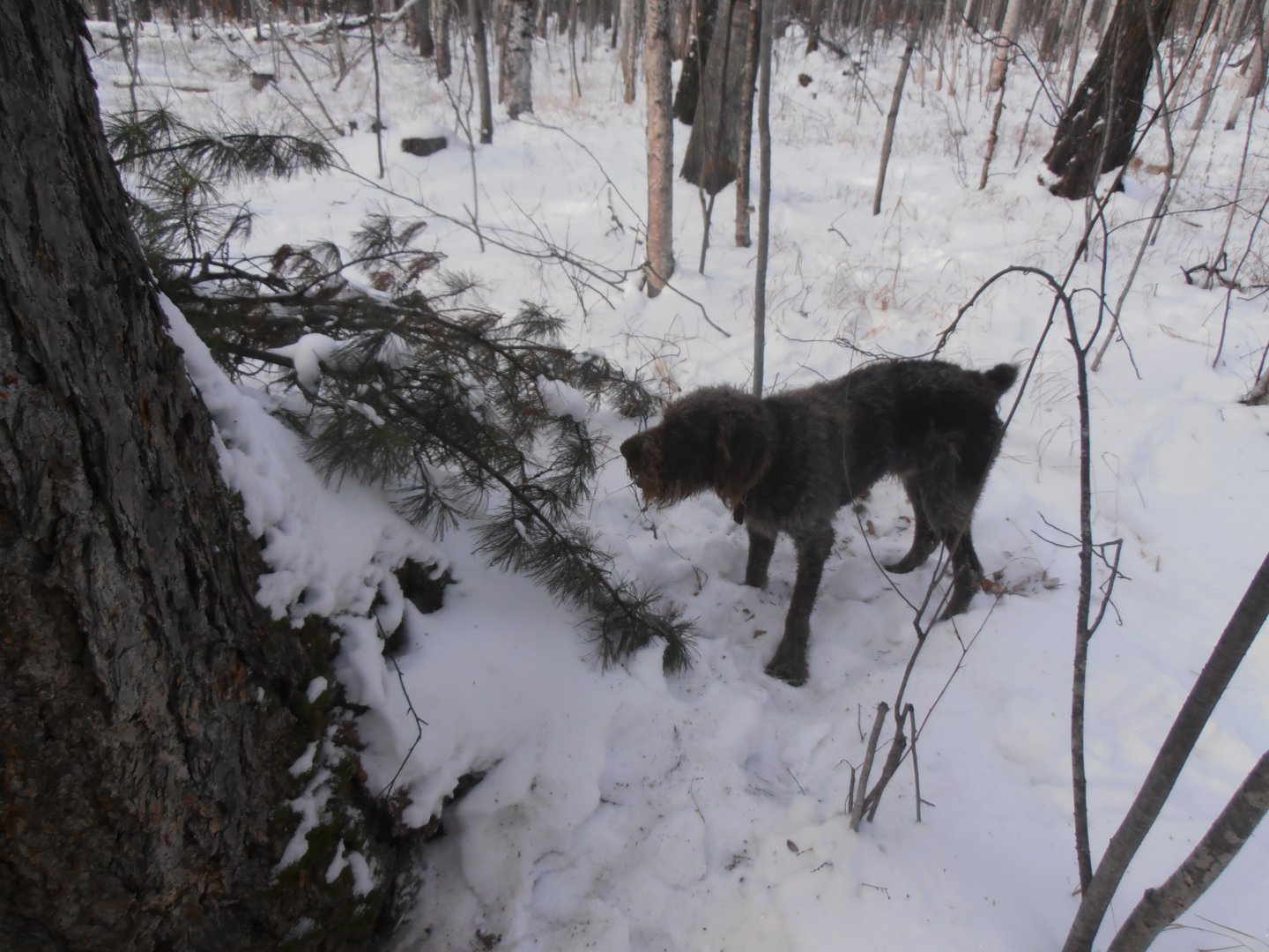 День начался и с ними головная боль,как добрать соболька,а то как то не серьезно получается бросать.Через 40 минут на месте.Обошел все по периметру,выхода нет.Кобель реагирует адекватно.