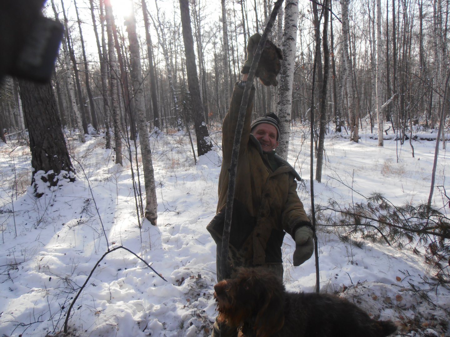 Петрович досконально оценивает цвет и пол соболя,а Бакс ревностно следит за ним,забрали добычу Посмотреть вложение 188889