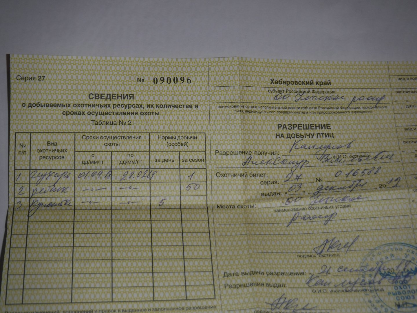 может мы все выложим свои разрешения на добычу а потом и фото кидать будем с трофеями.