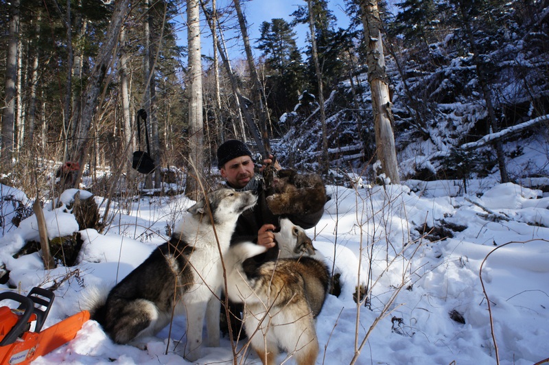 Ещё, как вариант поимки соболя живьём, охота с собакой, спец. натасканой на соболя. Желательна собака с умеренной злобой. На фотке собачке, что поменьше, 5 мес., нашла соболя в завале и откопала, соболь попался на приваде и ускакал с потасом по сопке до завала 200 метров.