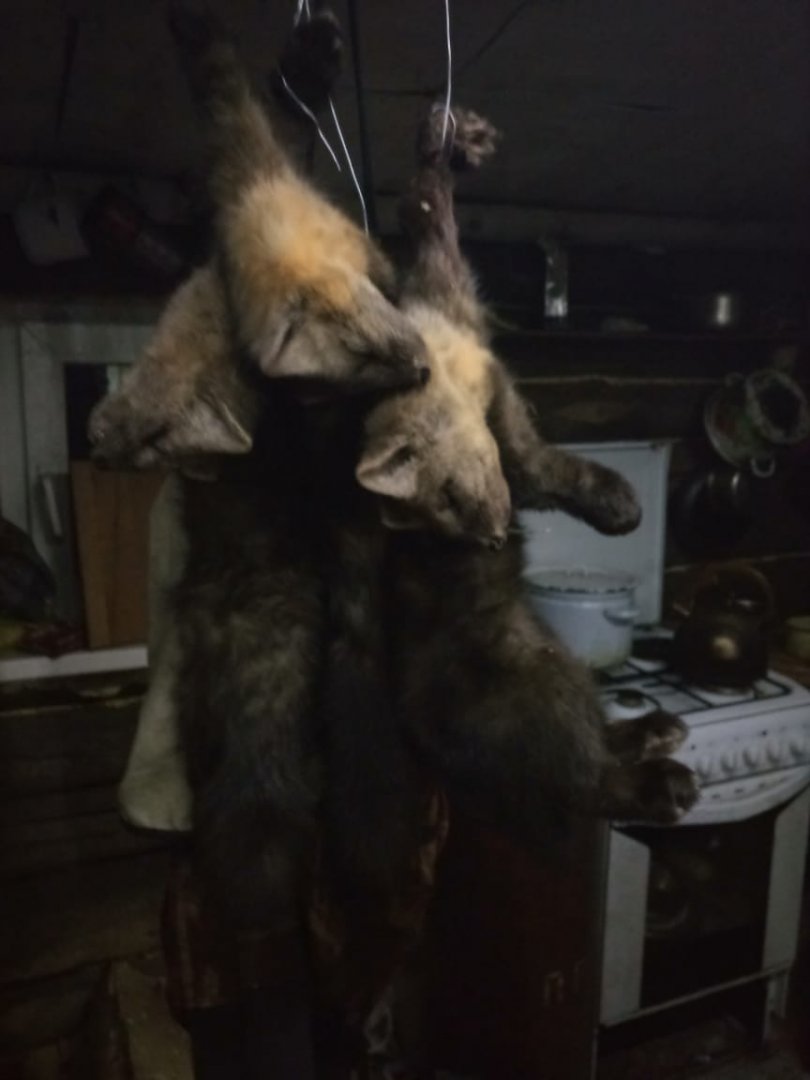 Шкура козы и хвост тухлого кижучачто висит на приманке на последнем фото?