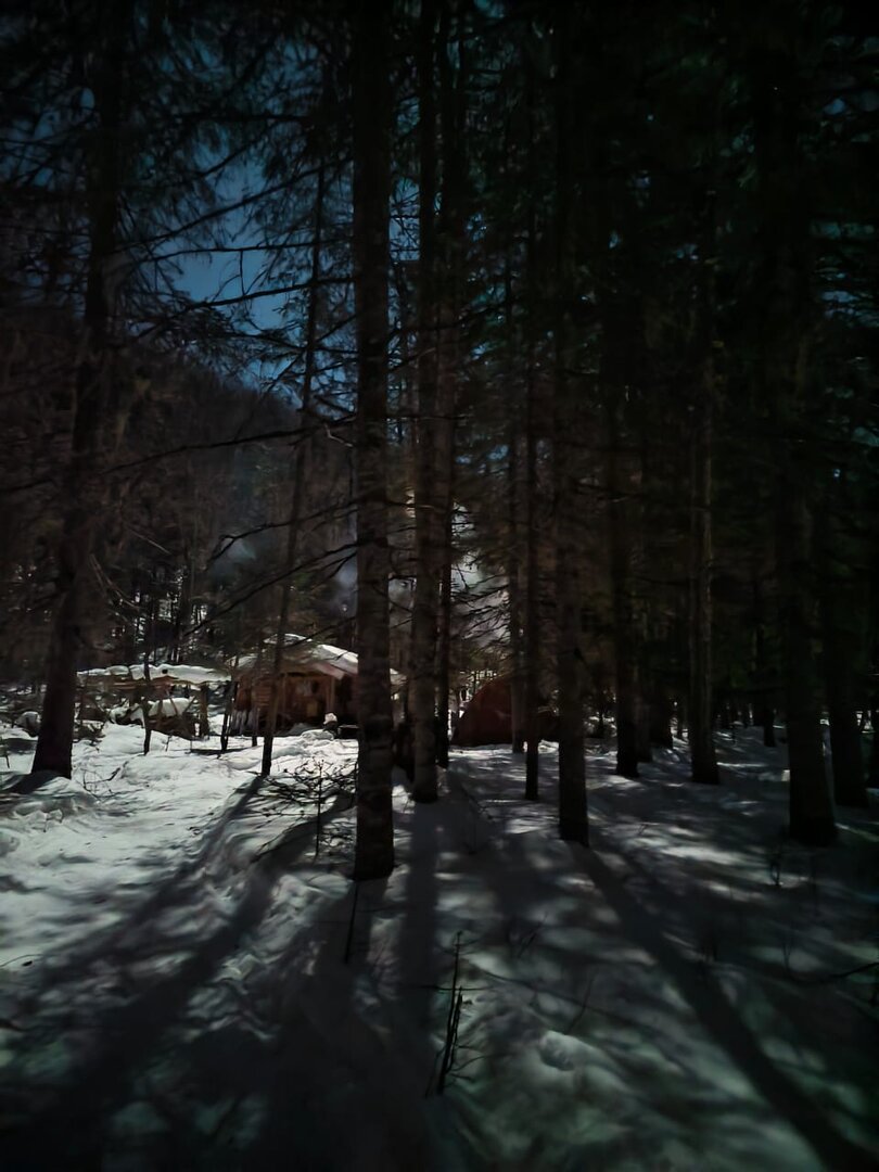 Снега нет. Все реки промерзли до дна. На Гере через дорогу наледь высотой уже около двух с половиной метров до июня таять будет. И на Гере и на Татарке наледи в пойме рек шириной метров по 50 от каждого берега. В лесу деревья по пояс, а то и по грудь в наледи.