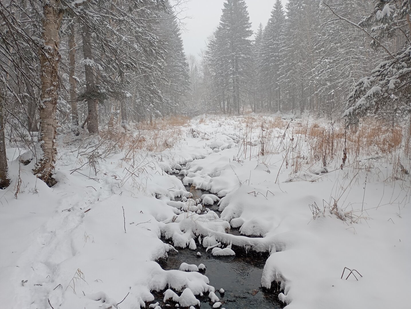 У меня снег начался в ночь с пятницы на субботу. В воскресенье выезжал, т. е. по сути чуть больше суток, итого на 15 км леса из следов: три соболя, в одном месте олени перешли и с десяток переходов босоногих, средних, больших, огромных, мамок с мелкими, короче массовый медвежий движ. Лет 15 такого не видел.