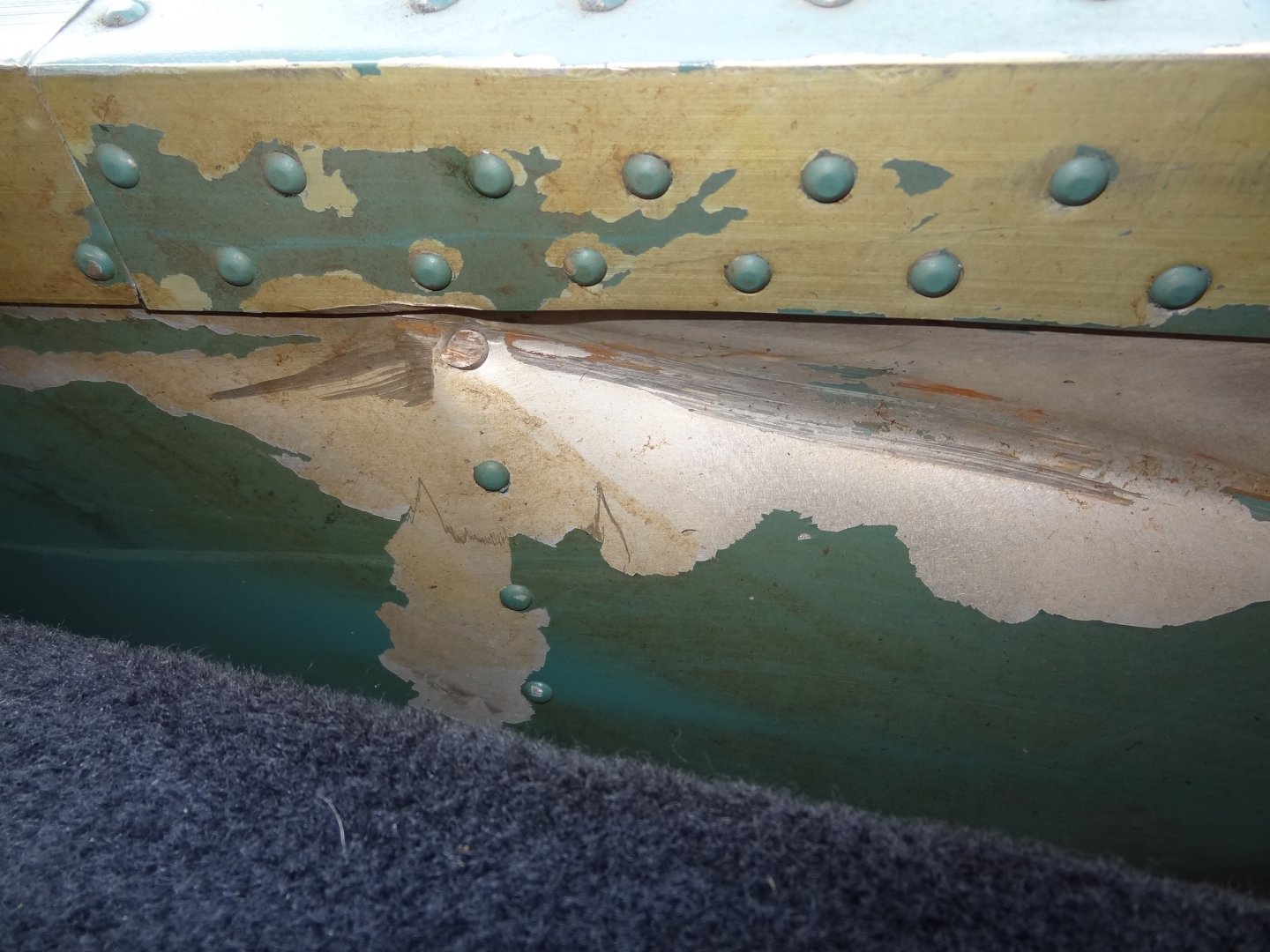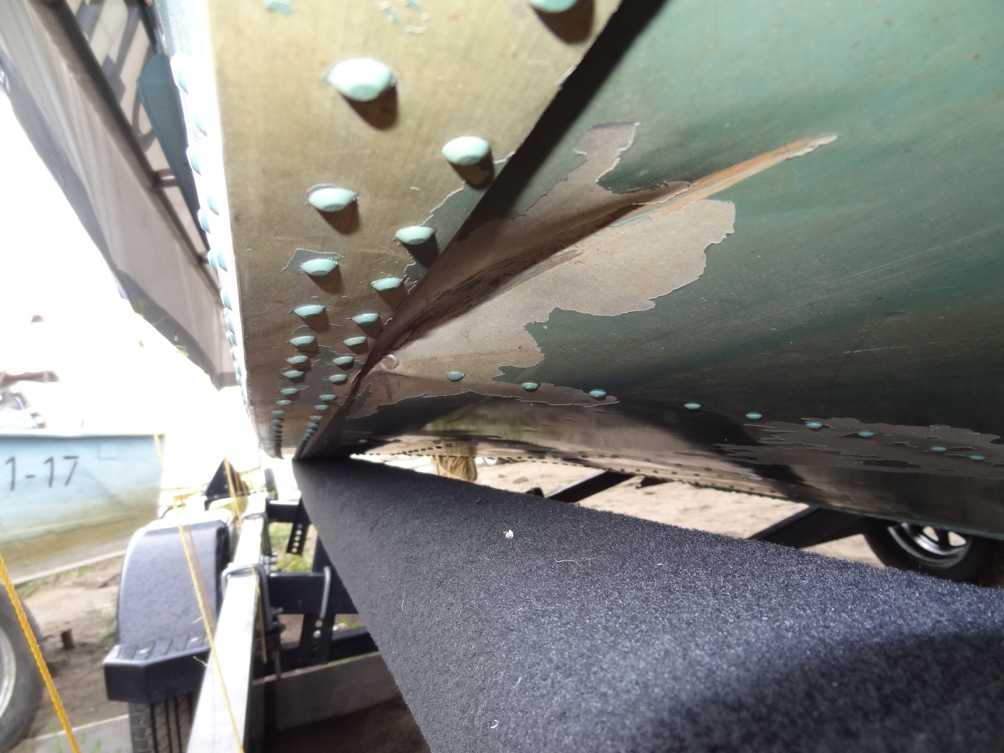 А что за лодка?Вот последствия удара АМг-шного клепаного корпуса. После удара проходил почти 2 сезона, течь так и не появилась, так-что АМг рулит. Позже выложу фото выровненного места удара.
