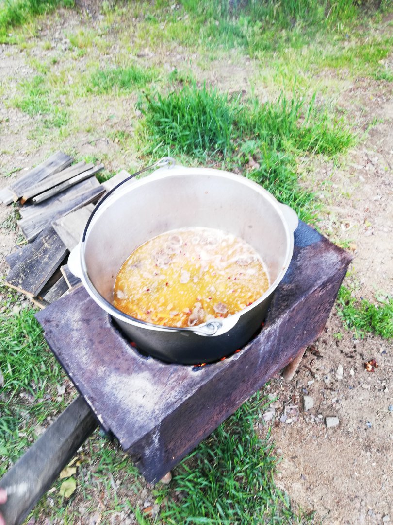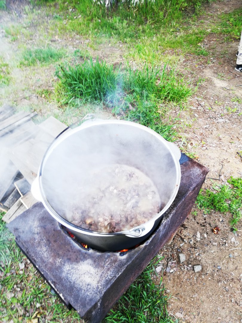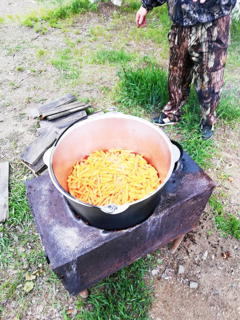 Когда я посмотрел на всю эту гору продуктов и на новый чугунный 8 литровый казан, я понял, что праздник под угрозой. Тут мне коллеги подсказали, у кого есть казан большего объёма. И вот я звоню хозяину 20 литрового казана, который по совместительству еще к тому же почетный форумчанин.