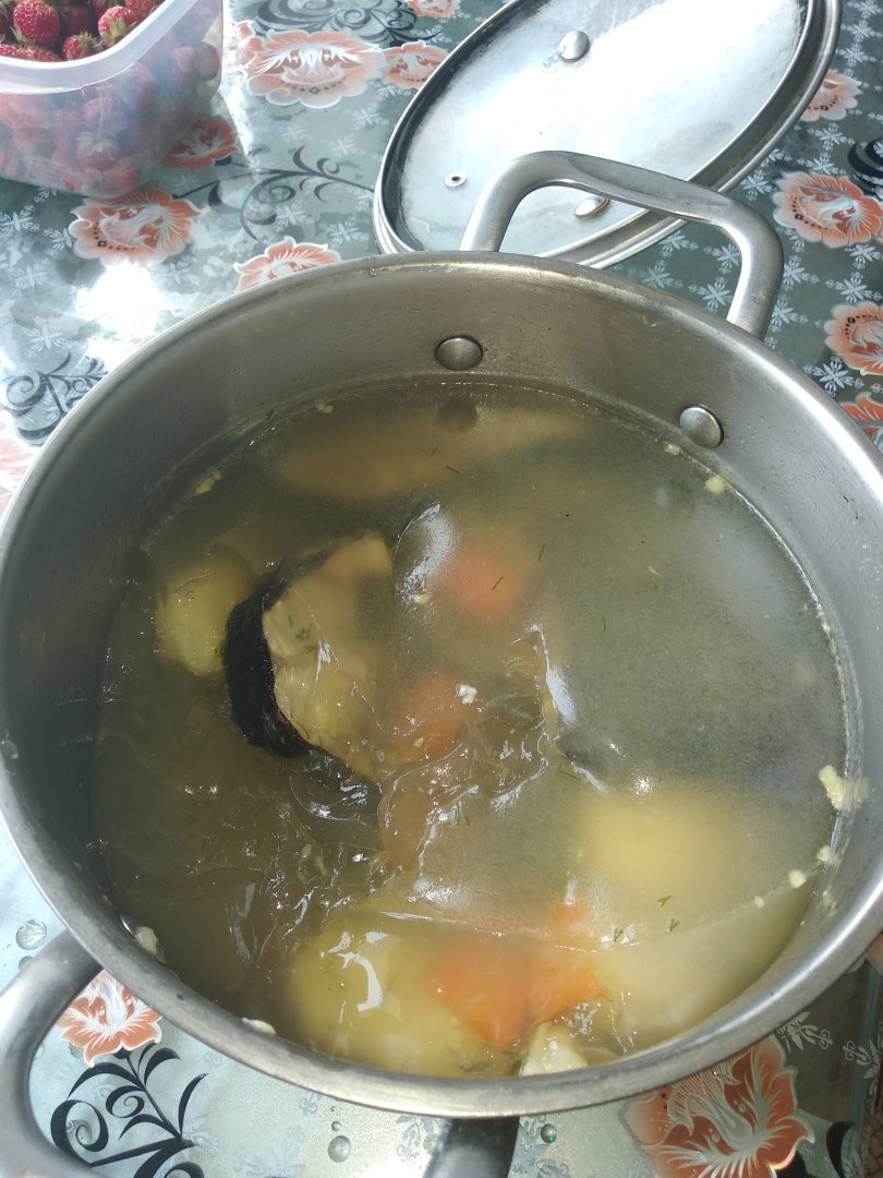 Тоже не хило.А я решил ушицы из свежепойманого сома забаламутить (вода, рыба, картоха, луковица, морковка, соль, перец, лаврушка)