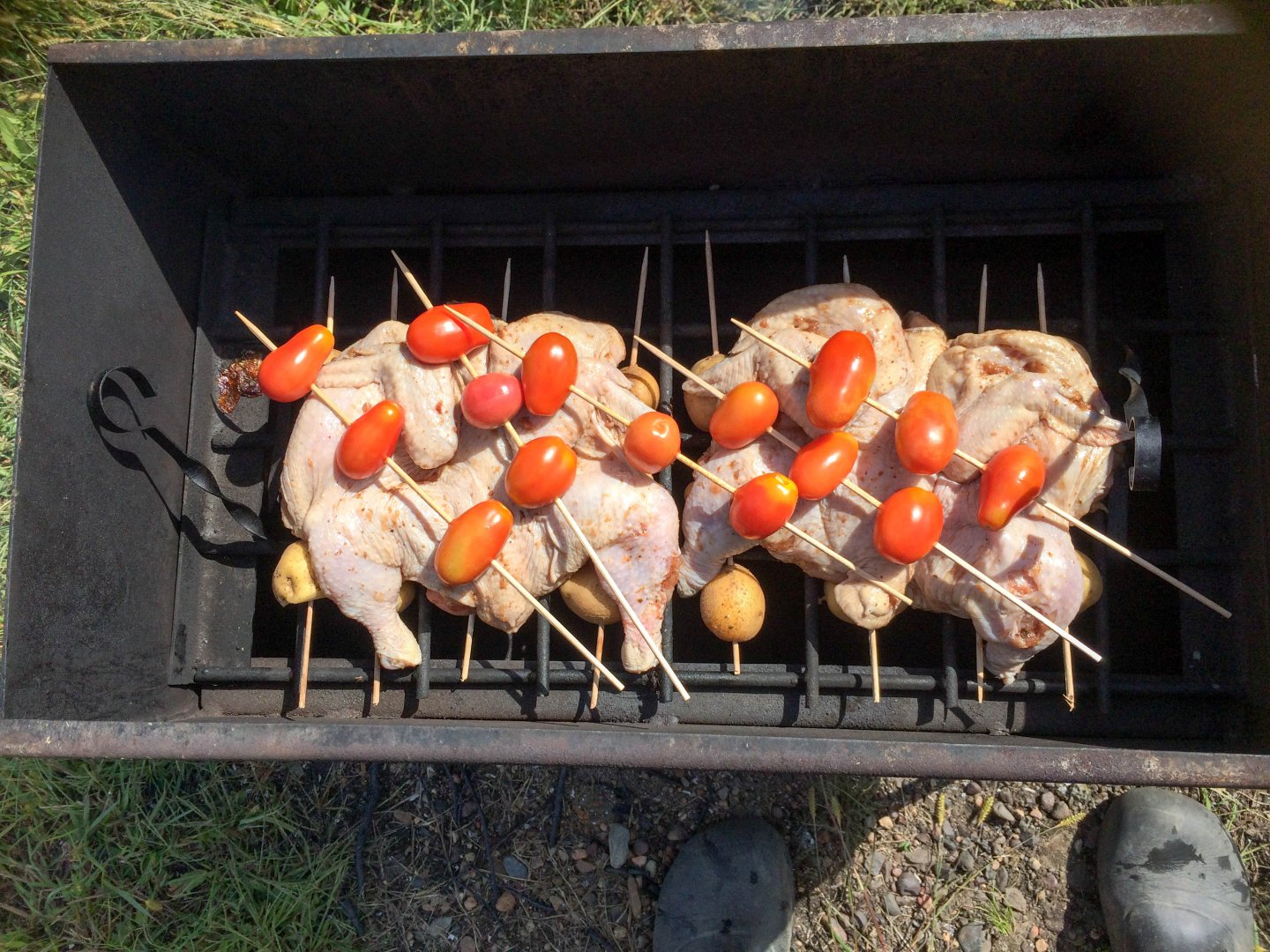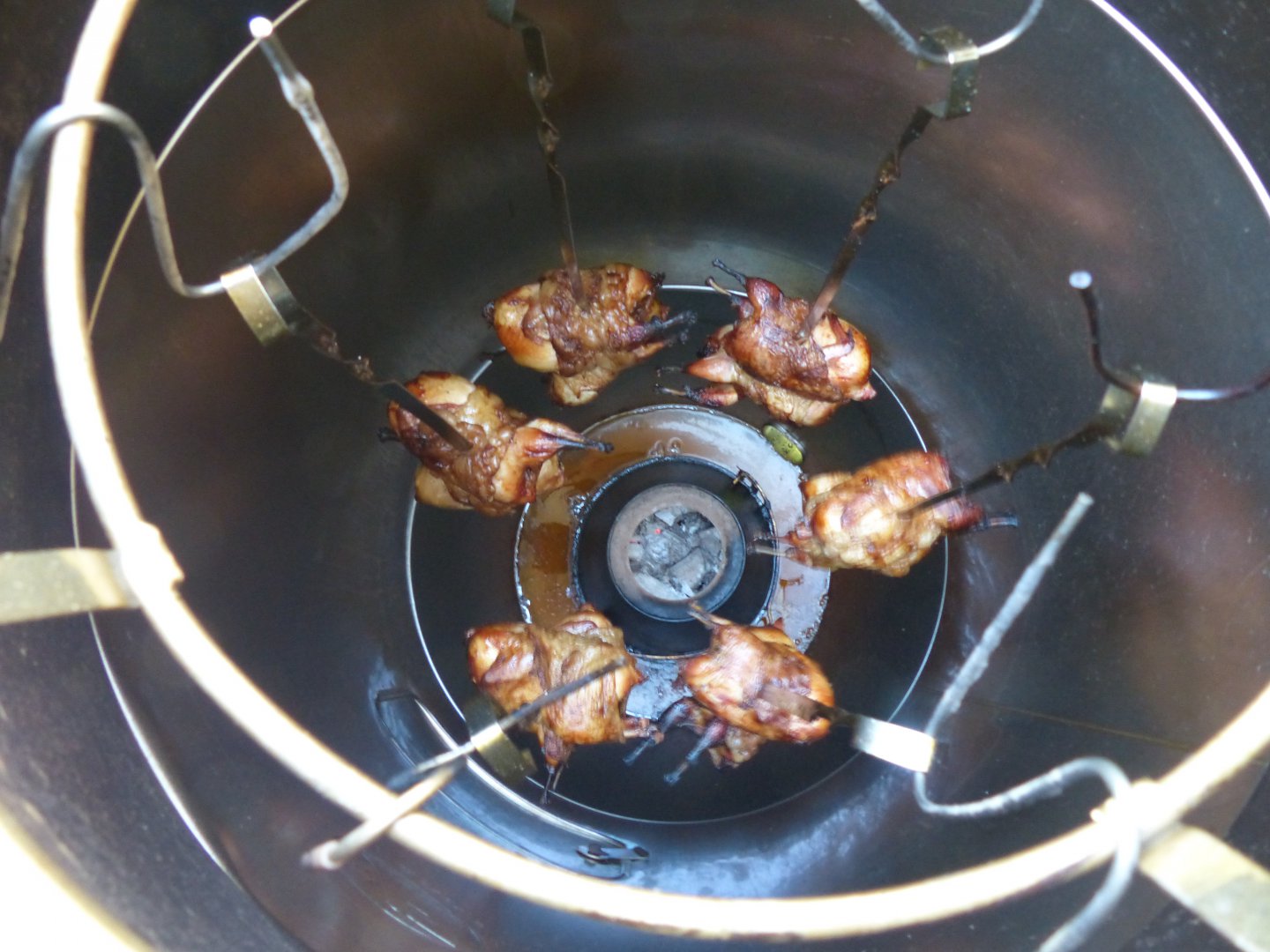 Рановато. Продолжаем. Нереально затупил не обернув ножки фольгой. Голые косточки обуглились моментально. Надо было брать бурый сахалинский уголь-он нежнее. Но уже поздняк, похер, и так сойдёт.