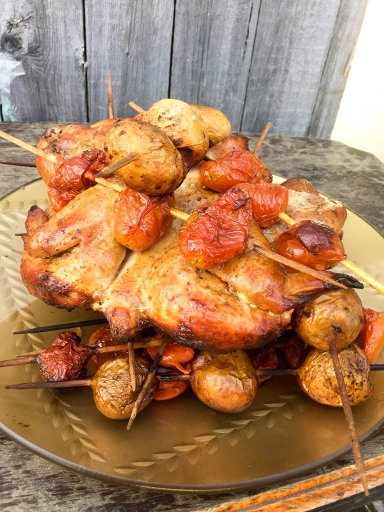 Мяса ем мало, но тут что-то захотелось и случай подвернулся. Решил запечь в шарабане с овощами, фишка заключалась в том, что добавил к овощам порезанный свежий взрослый белый гриб. В результате овощи пропитались вкусом белых грибов, да и сам гриб получился неплохим.