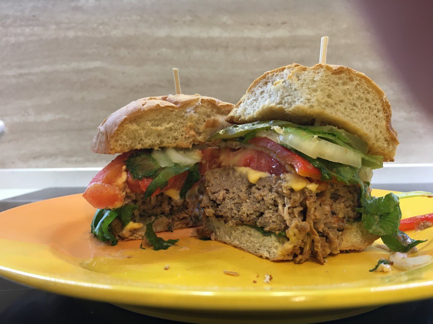 Очень даже не дурно! Булочка, овощи и котлетка...