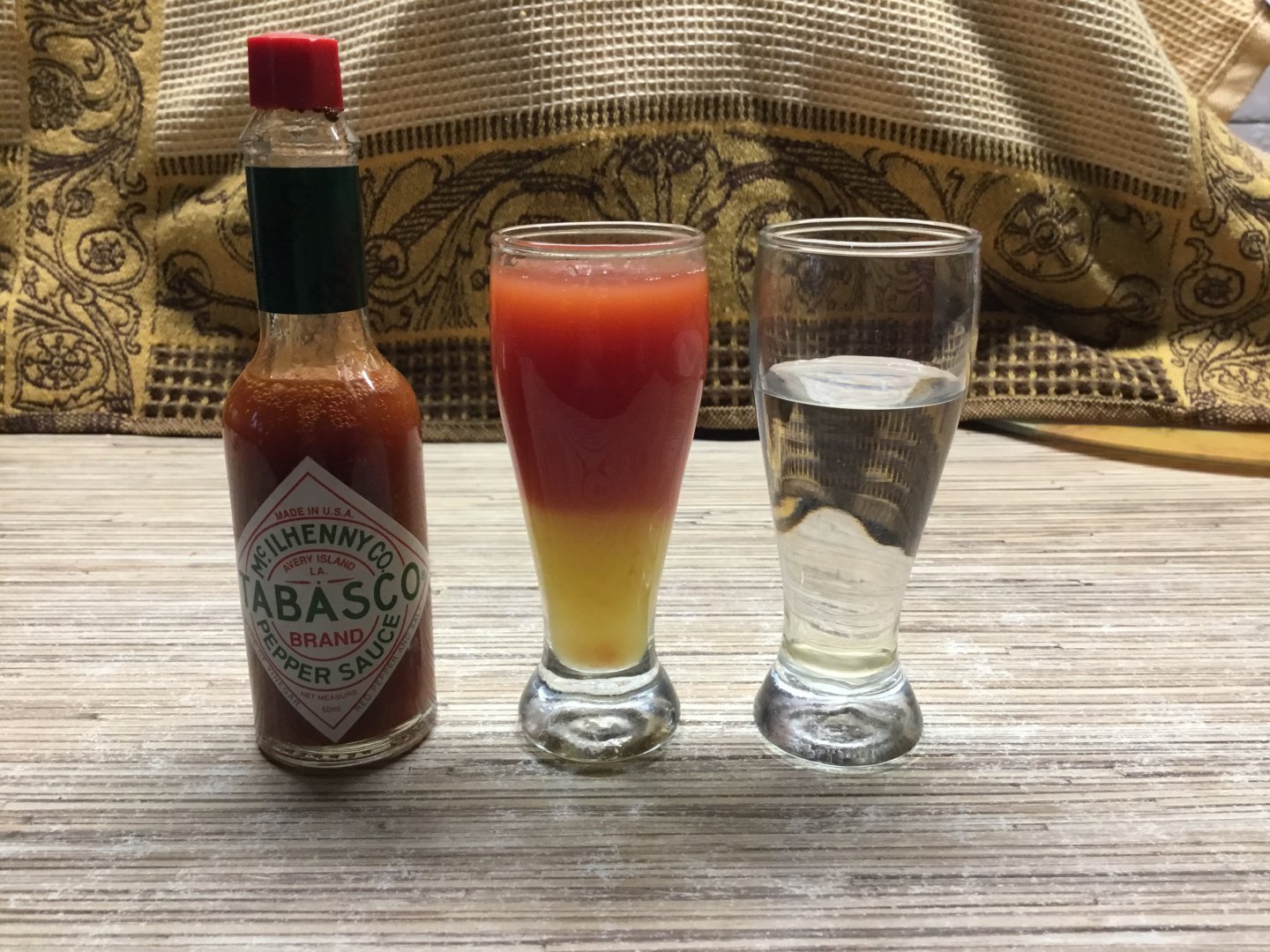В такой хировый день,где пасмурно и хмуро берём мы 50 текилы и рядом стопочку с сангритой( 1 часть апельсинового сока,2 части томатного сока, щепотка соли и несколько капель соуса табаско не размешивая) сначала жахаем текилу и запивая все сангритой сидим и получаем кайф