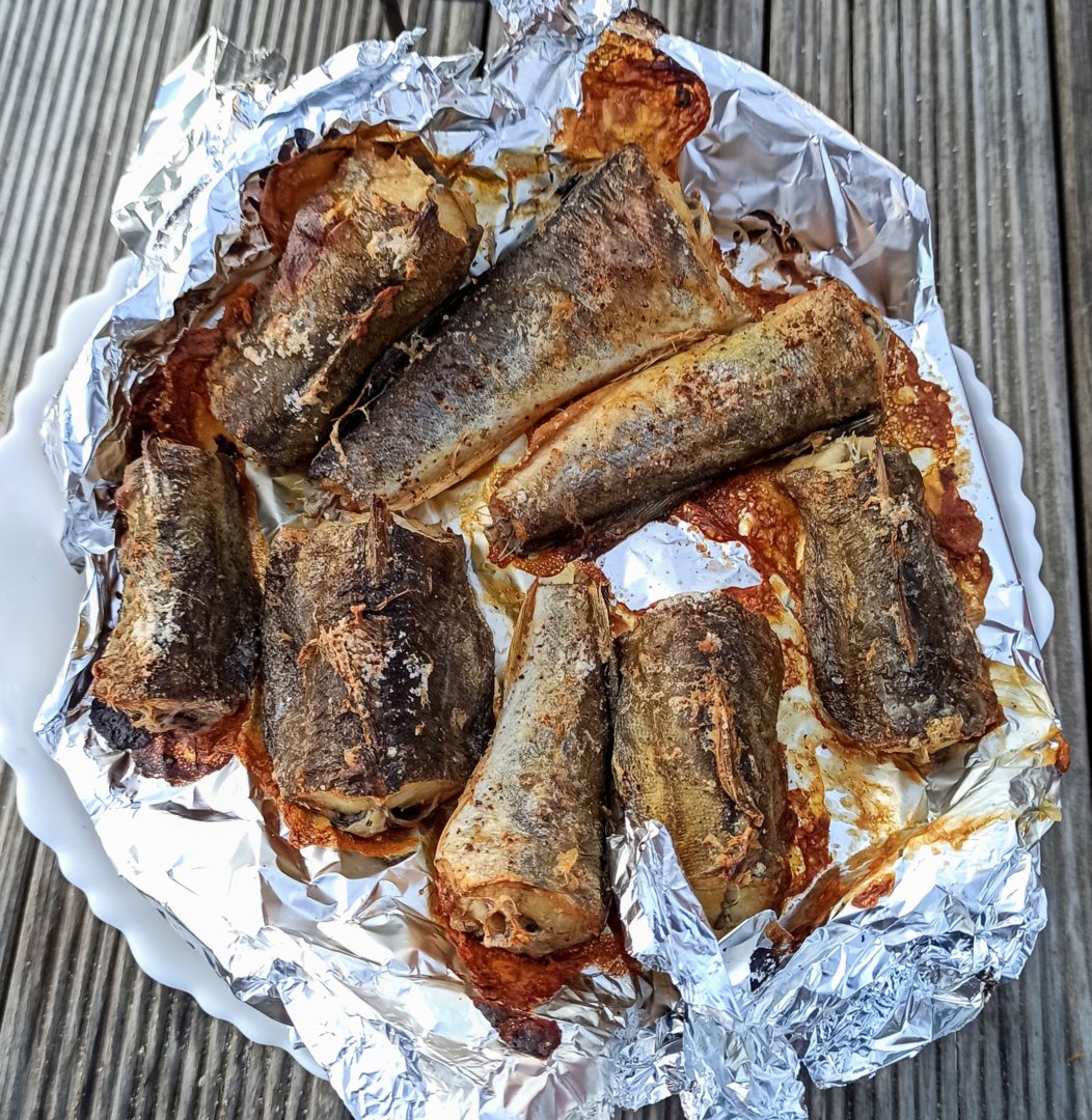 В этом году приехал с рыбалки, привез мешок наваги. Решили первый раз в жизни, навагу не жарить, а запечь. Конечно не в тандыре, а всего лишь в духовке. Но мне не вкатила. Жаренная вкусней.