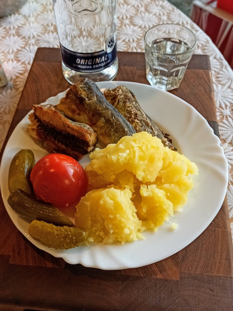 Выглядит очень аппетитно.Домашняя картошечка, домашние соленья и наважка...