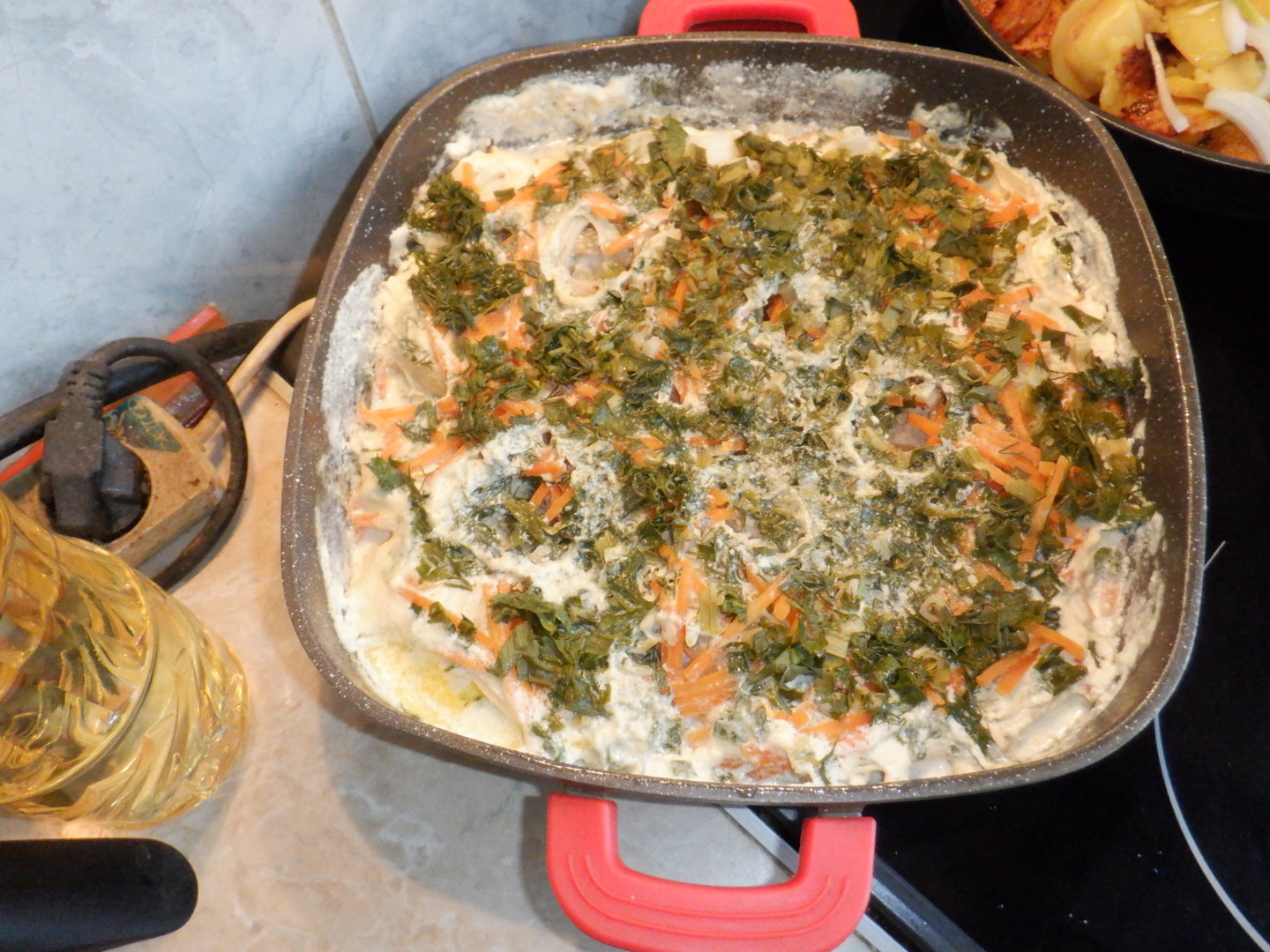 и ставим на плиту,как закипит уменьшаем нагрев и через 10 минут обильно посыпаем зеленью .Через 5 минут блюдо готово. Посмотреть вложение 321267 Посмотреть вложение 321271