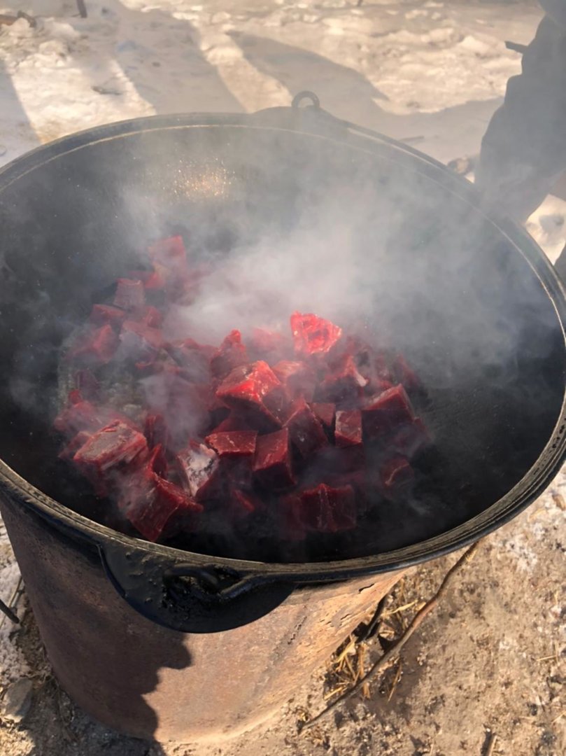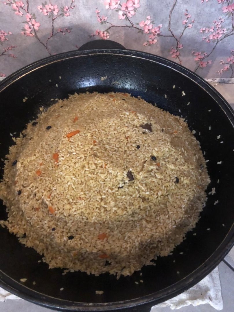 Плов. Все в нем как обычно. Только мяско в этот раз - сахатинка.
