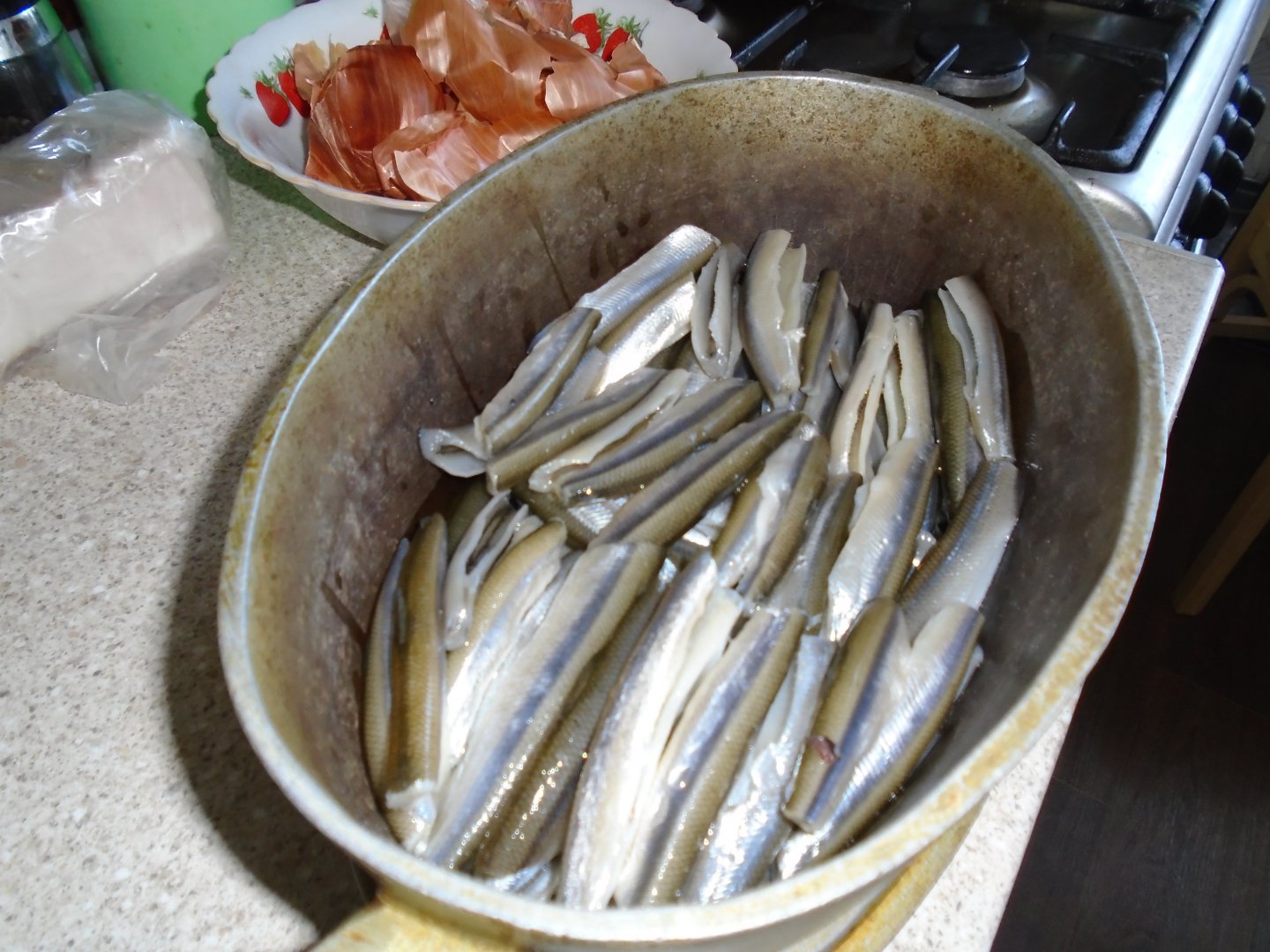 Несколько раз пробовал у родителей шпроты из корюшки. Сегодня посмотрел как их готовят.