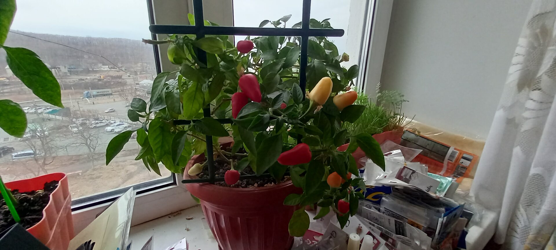 Это специательно комнатный? У меня растет "еврейский" - семена привезены из Израиля. Он чуть помельче, не краснеет (остается желтым). Ацццки крепкий. Недостаток - оооочень туго всходят семена. Одно взошедшее семечко из 30-40.Приправа спеет