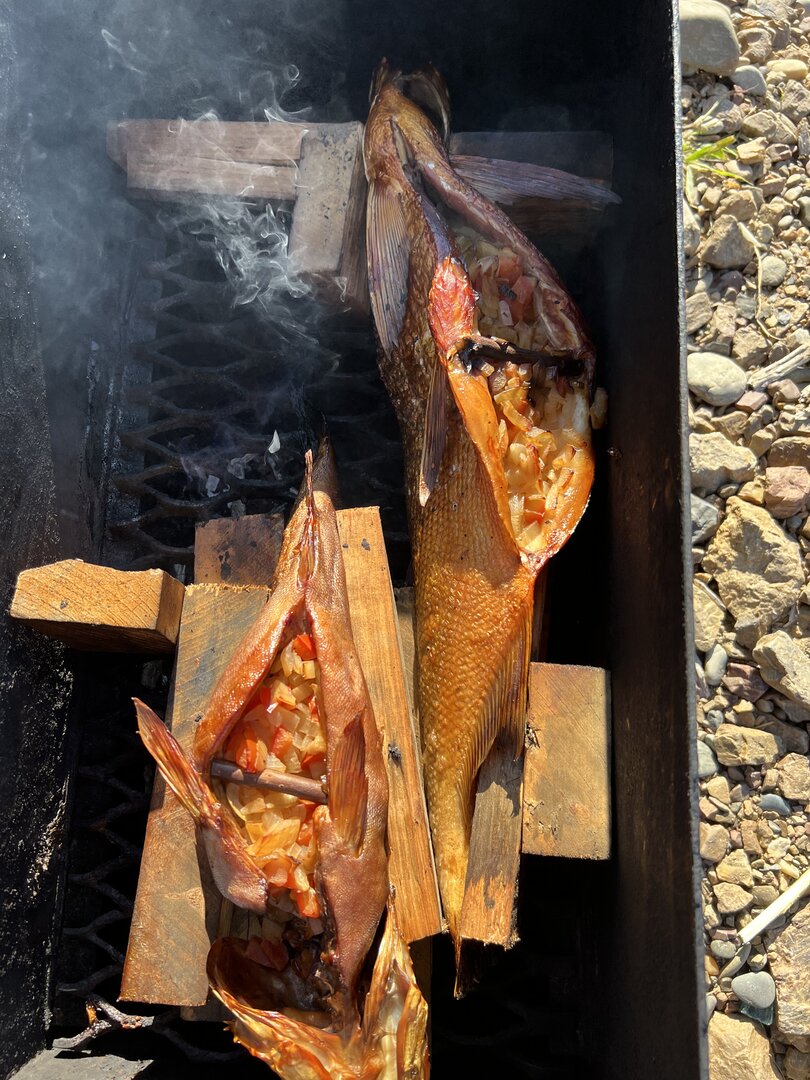 Что бы сок был внутри, пороть надо по хребту. И спина быстрее пропекается и сок внутри, ну и начинка не убегает.недавно попробовал один из вариантов фаршировки так называемым салатом, а именно резанным луком и помидорами ( солим, перчим) едим в прикуску с рыбой. Рыбу необходимо готовить спиной вниз, что бы соки оставались внутри. Посмотреть вложение 357038