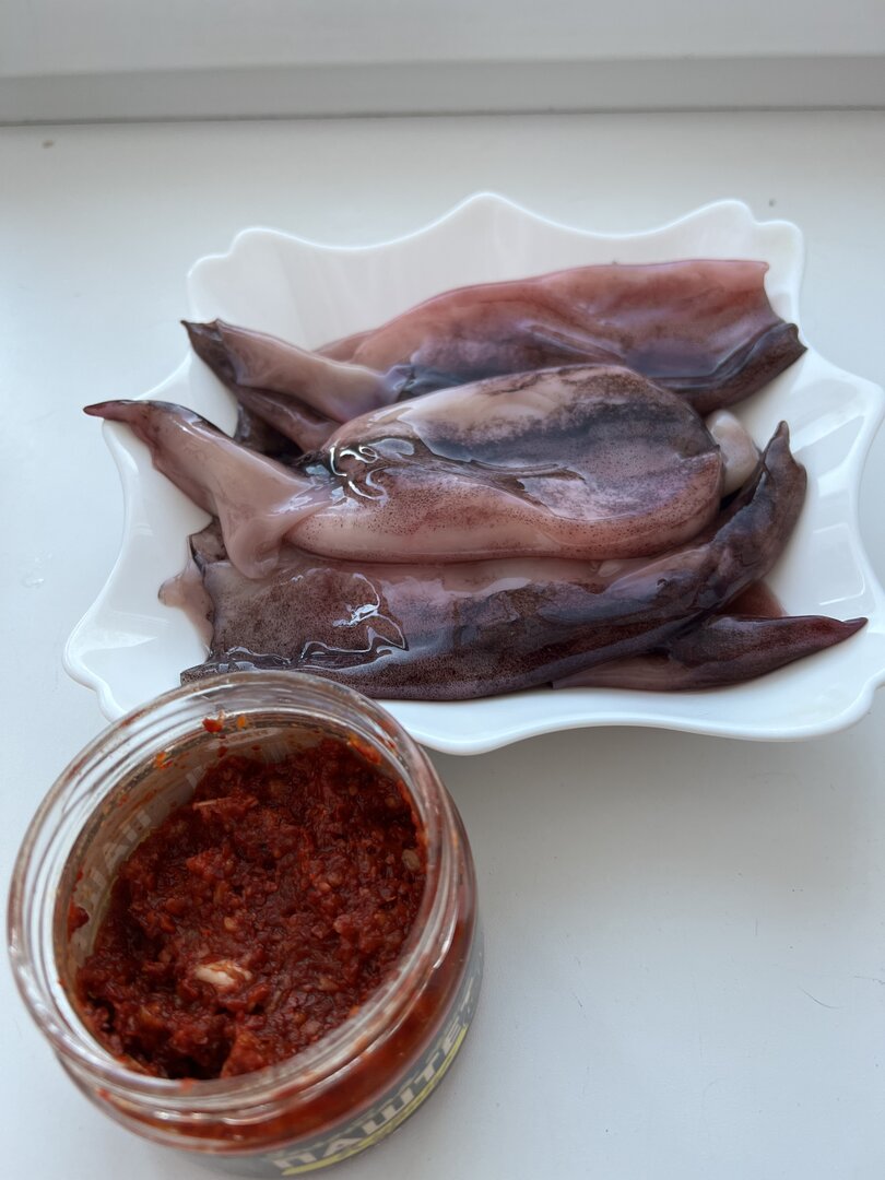 Заменить кальмаром можно? Думаю даЧоткаль - соленая каракатица. Несколько раз пробовал данное блюдо привезенное с Кореи и вот решил сам приготовить. Самое сложное - найти каракатицуугощая щукой знакомых корейцев, случайно узнал что дефицитный продукт есть в наличии - ура готовим ! Итак, для начала каракатицу нужно хорошенько засолить и отправить в холодильник на 2 недели, далее чистим, промываем, пробуем на соль, в случае необходимости вымачиваем. Скажу сразу, я несколько упростил рецепт, но результатом остался доволен. Порезанную каракатицу смешал со свеже приготовленным яннемом, добавил пару ложек сахара и убрал в холодильник до вечера. Закуска отменная. Посмотреть вложение 363816 Посмотреть вложение 363818 Посмотреть вложение 363819