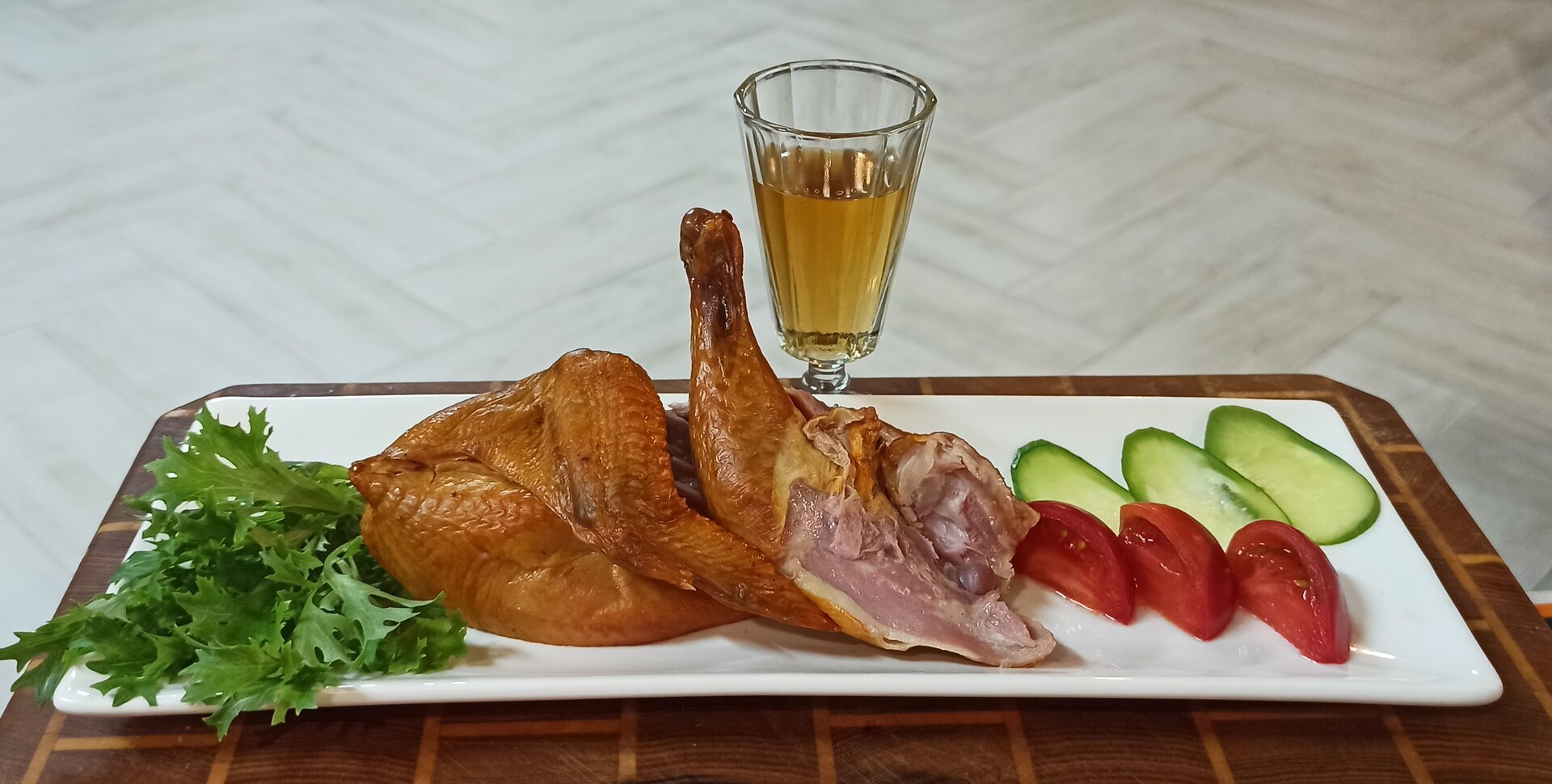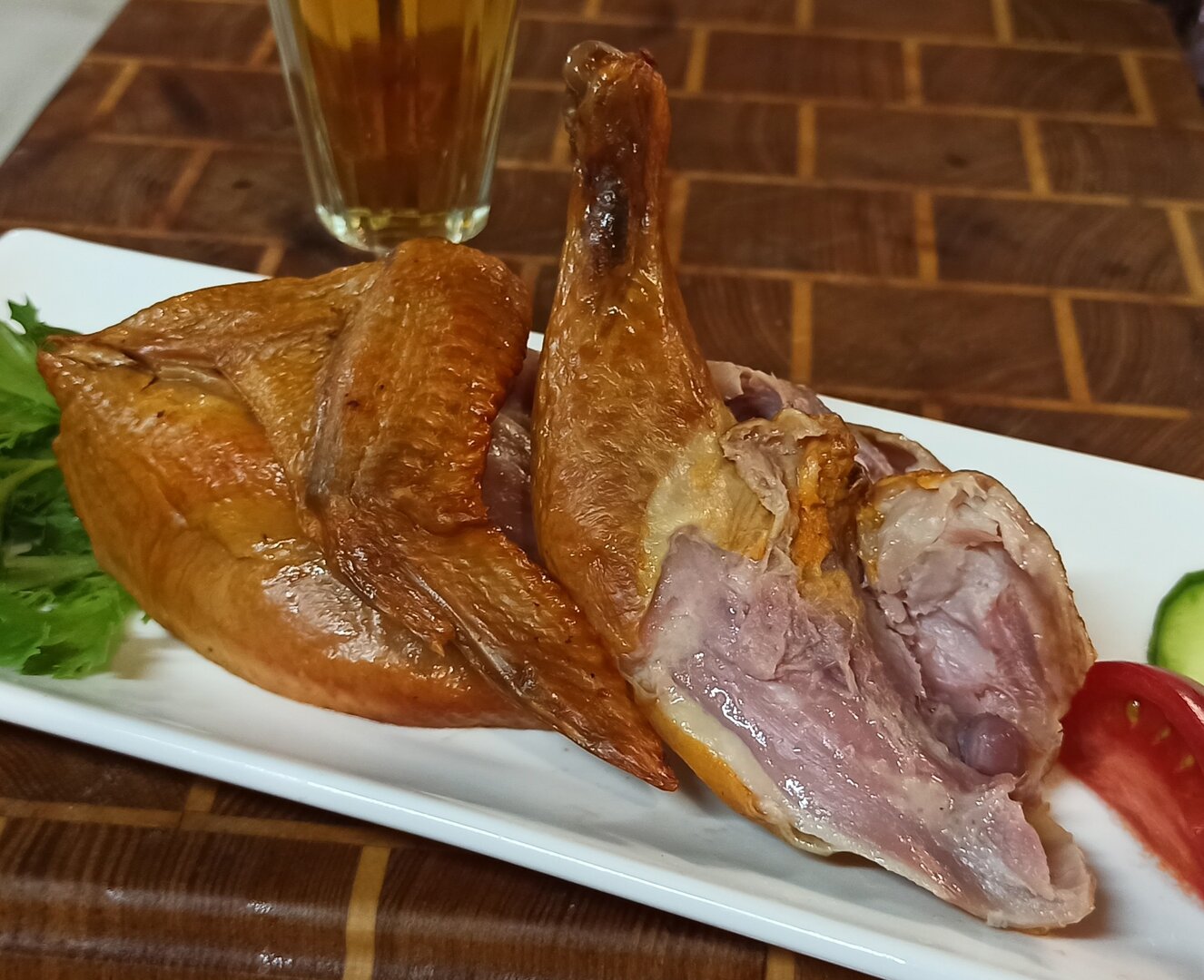 Перепелочка горячего копчения, с овощами и усилителем вкуса :E034: