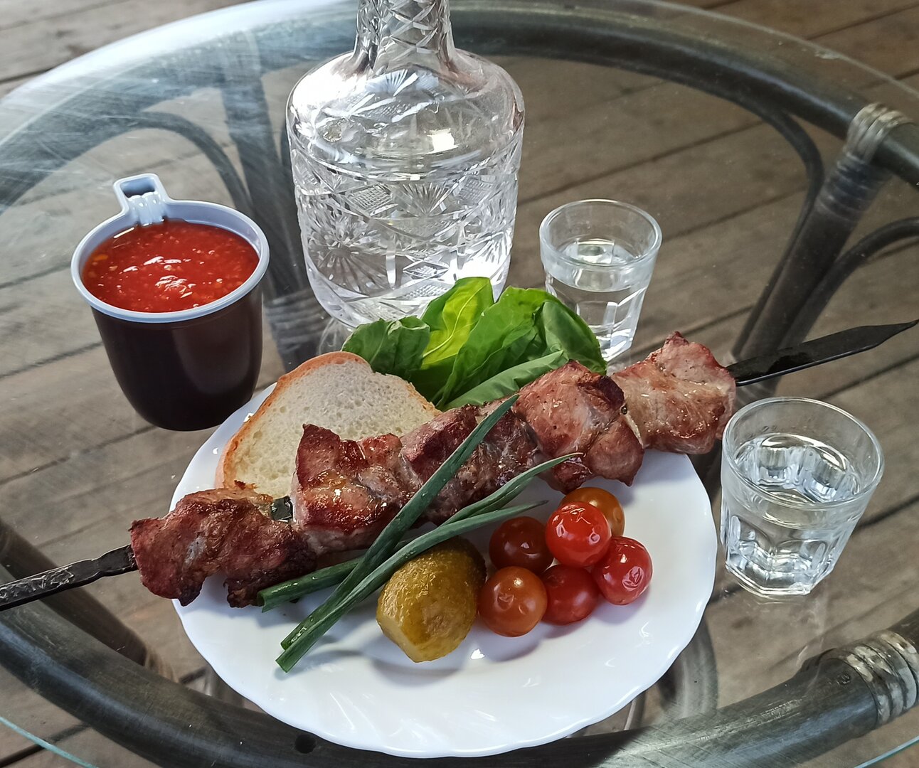 В моём, прогретом тандыре, шашлык готовится 10 минут + 5~7 минут с открытым поддувалом. Да, за 20 минут мясо готово!