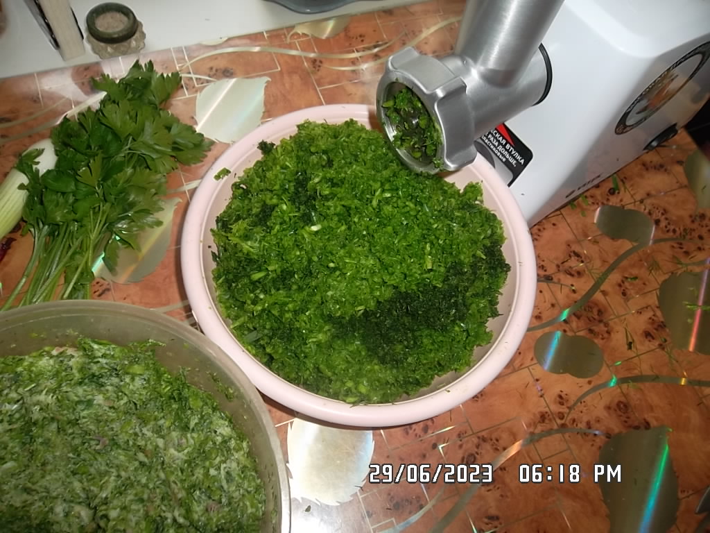 Накуролесил сегодня сала с чесночными перьями. Приятственно так,на кусочек черняшки тоненьким слоем,и посмаковать,для аппетита... Кроме того,перья чеснока,петруху,укроп,базилик,короче,все,что назрело на сей момент,чз агрегат,и залил большим кол-вом оливкового масла. Настоится,а затем в салатики...М-м-м-м...