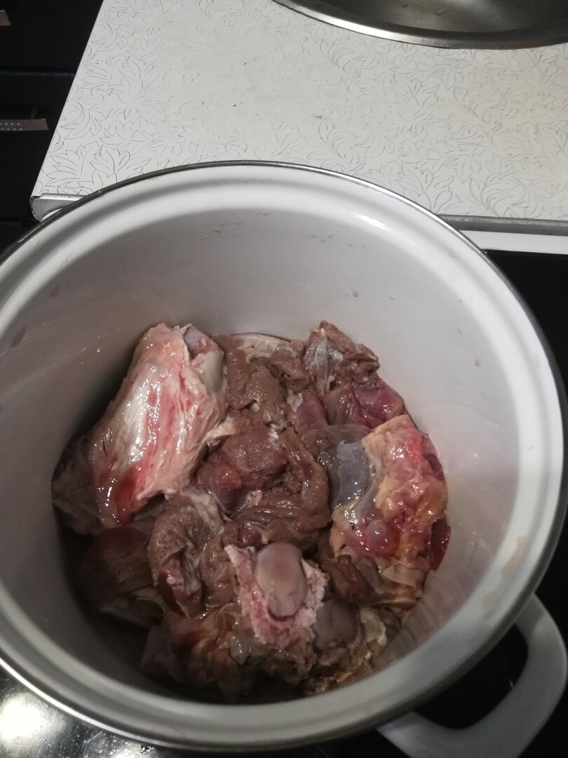 Мясо вкусное, но все равно не тает во рту. При следующей попытке добавлю больше лука, что б дольше тушить мясо. Прям чуть чуть не хватило, еще бы полчасика. . Ну или свинину.