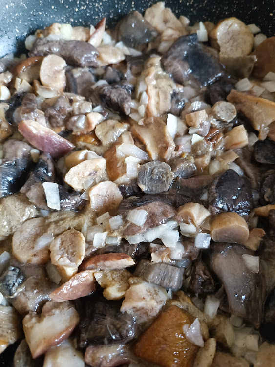 Достал пакет разномастных грибов, обжарил их с лучком и солью с перцем.