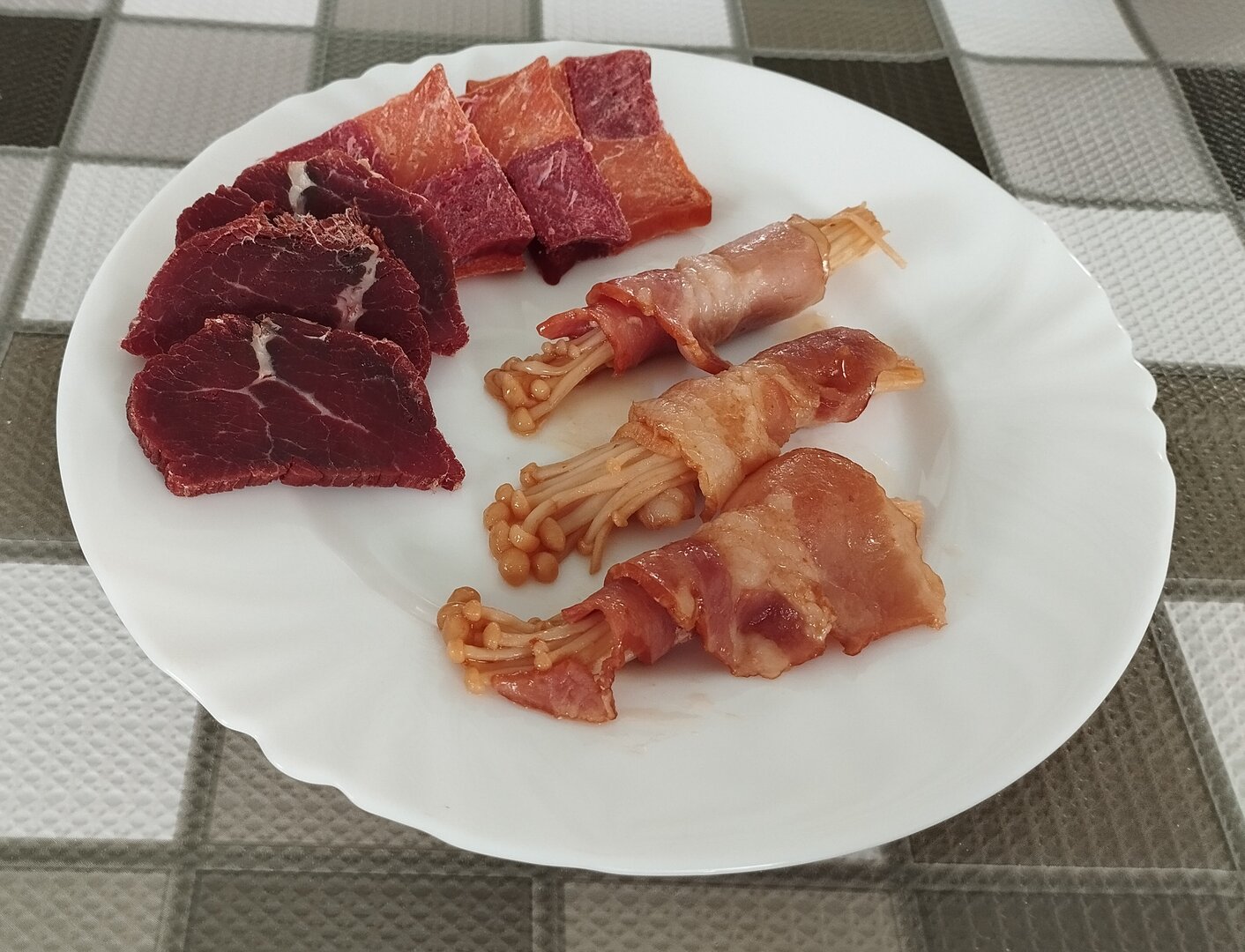 Ну там сыровял разный, грибочки в беконе