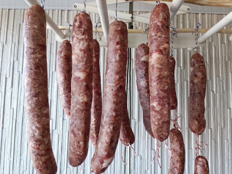 А пока работал сувид, по-быстрому подготовил фарш куриный, набил сосиски