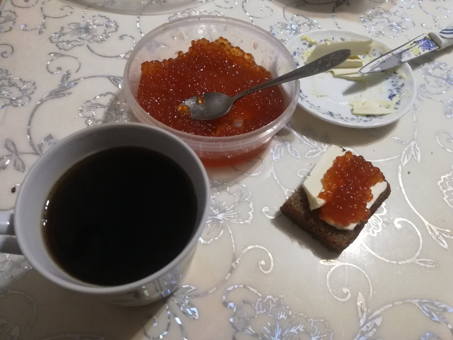 Хлеб понятно, красная икра тоже, а вот масло сливочное по нонешним временам знаешь...