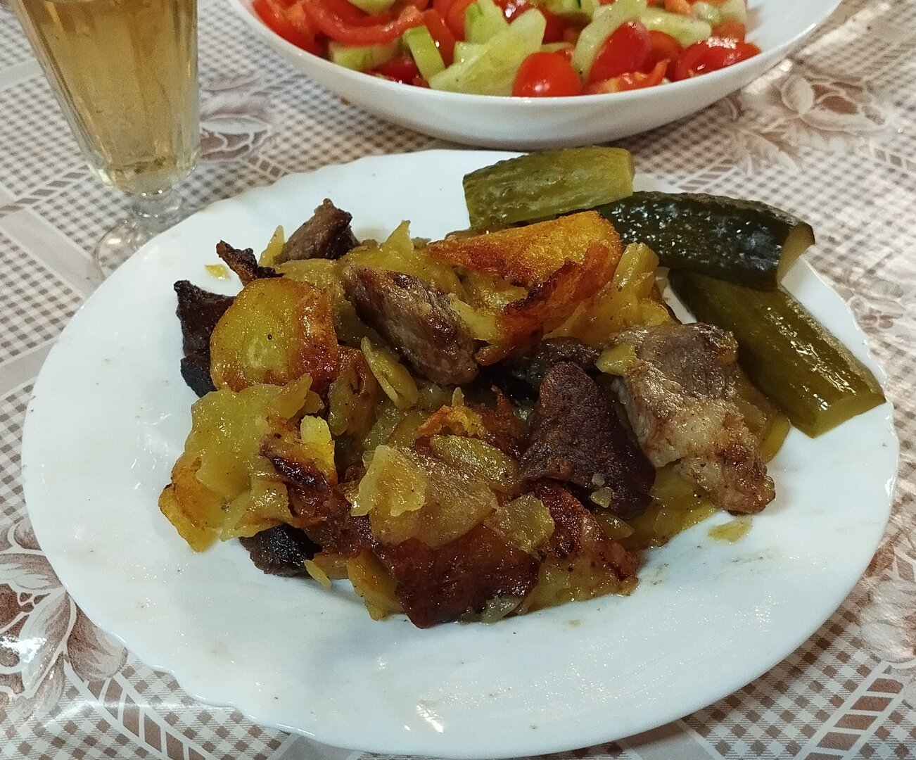 Пожарил с картохой, соленый огурчик и настоичка на кедровом орешке ;) Посмотреть вложение 409632