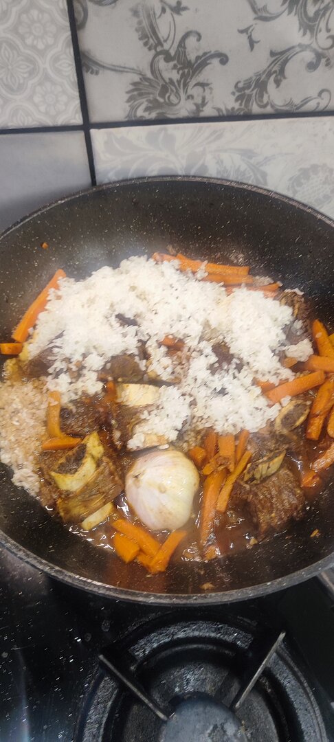 Но вообще главное блюдо сегодня - суп. Гороховый, на говяжьих мясных ребрышках, свинных копчёных хрящах, колбаске вареной... Но тут заминка😁 за горохом гонец побежал