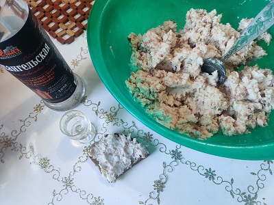 Нарезал сальцо от домашнего порося, соленья достал, налил свежайшего усилителя вкуса и.....