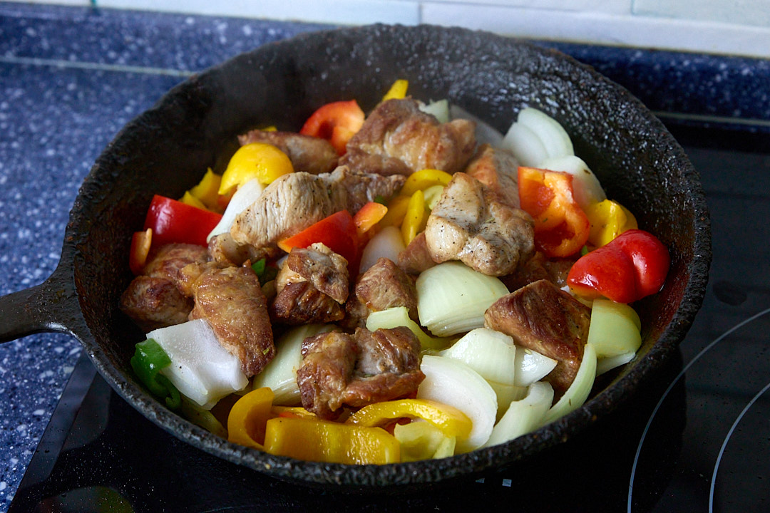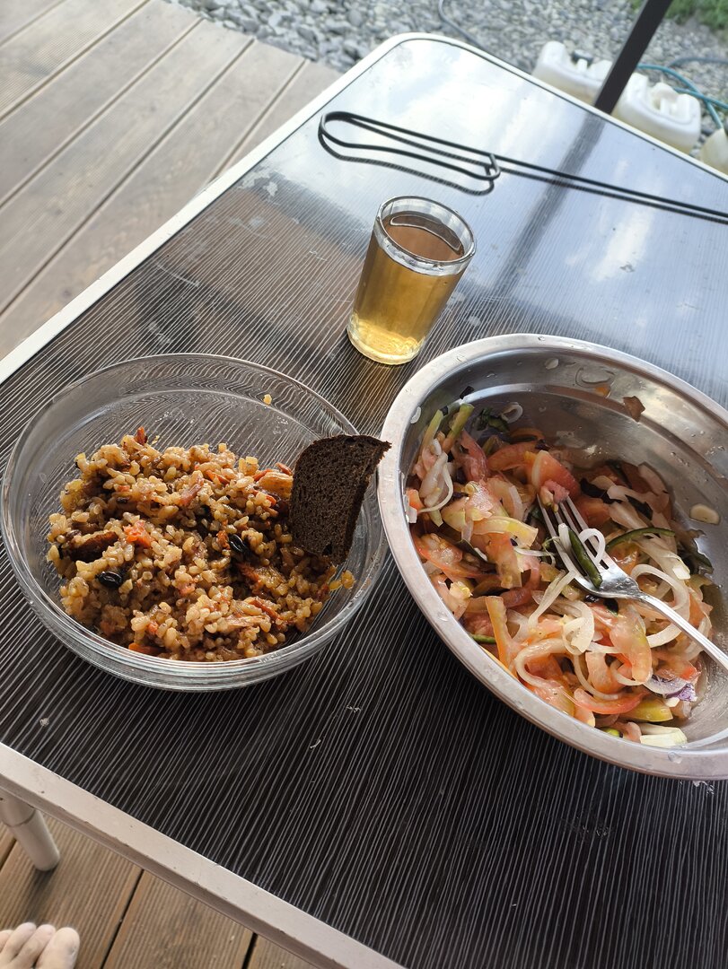 Жаркое, тут свиная шея с овощами. Зелень вприкуску, но нравится зелень есть, а жаркое вприкуску;) И "свой" хлебушек - с пылу, с жару... 40 минут и готово. А если час готовить, то это совсем другое, заоблачное ))