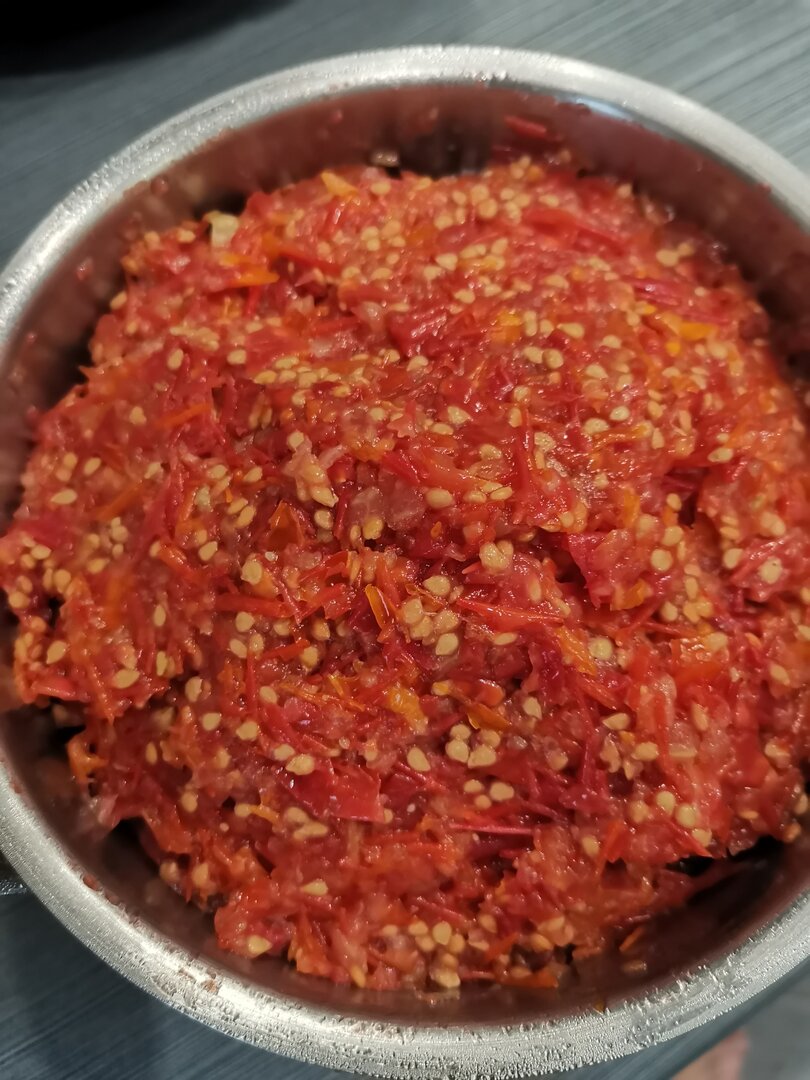Под конец совсем немного уксуса (натурального яблочного, винного или рисового), специи по вкусу, я остановился на добавлении только хмели сунели и чуть чеснока.