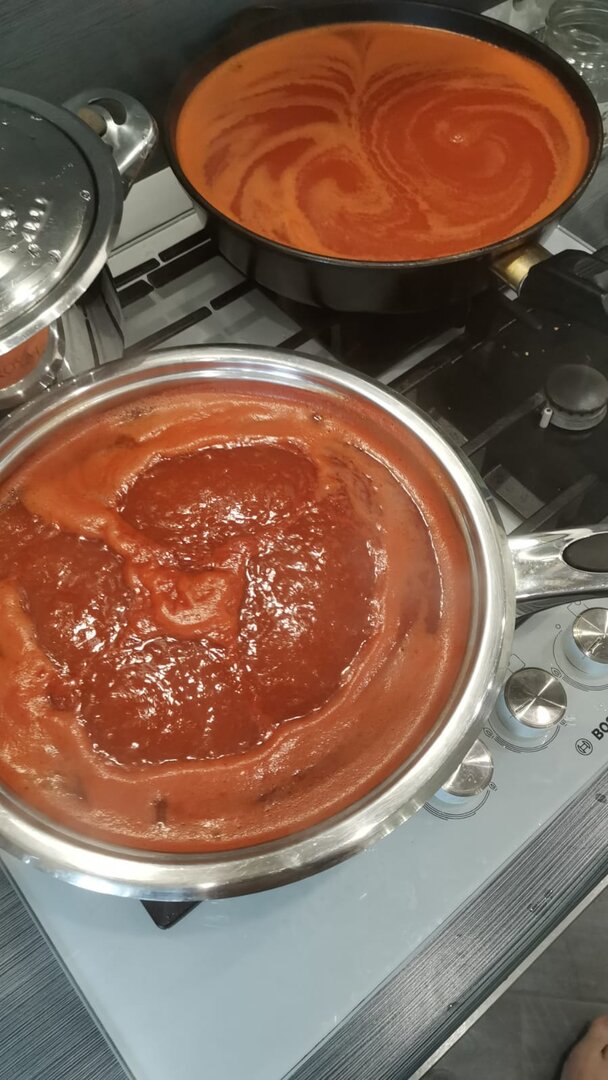 Забыл уточнить, вся масса упаривается больше чем в 2 раза, с 5 л получается примерно 2 литра кетчупа.